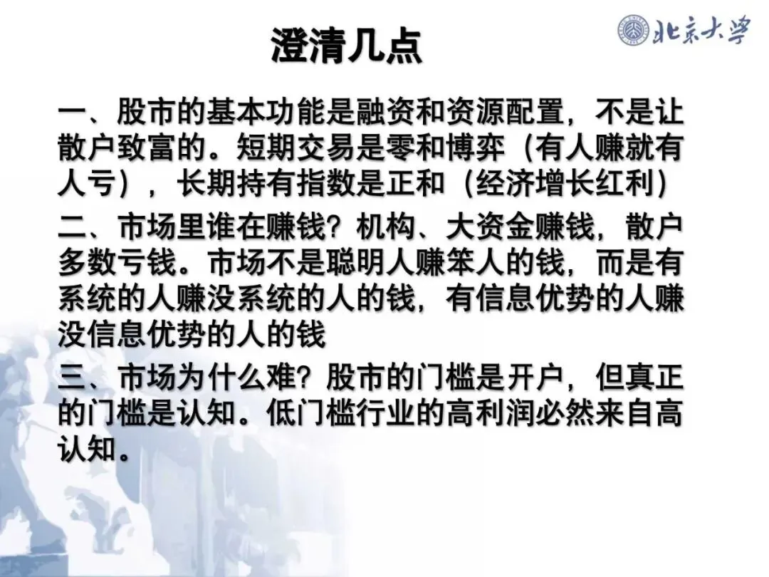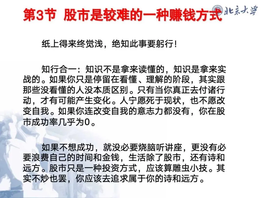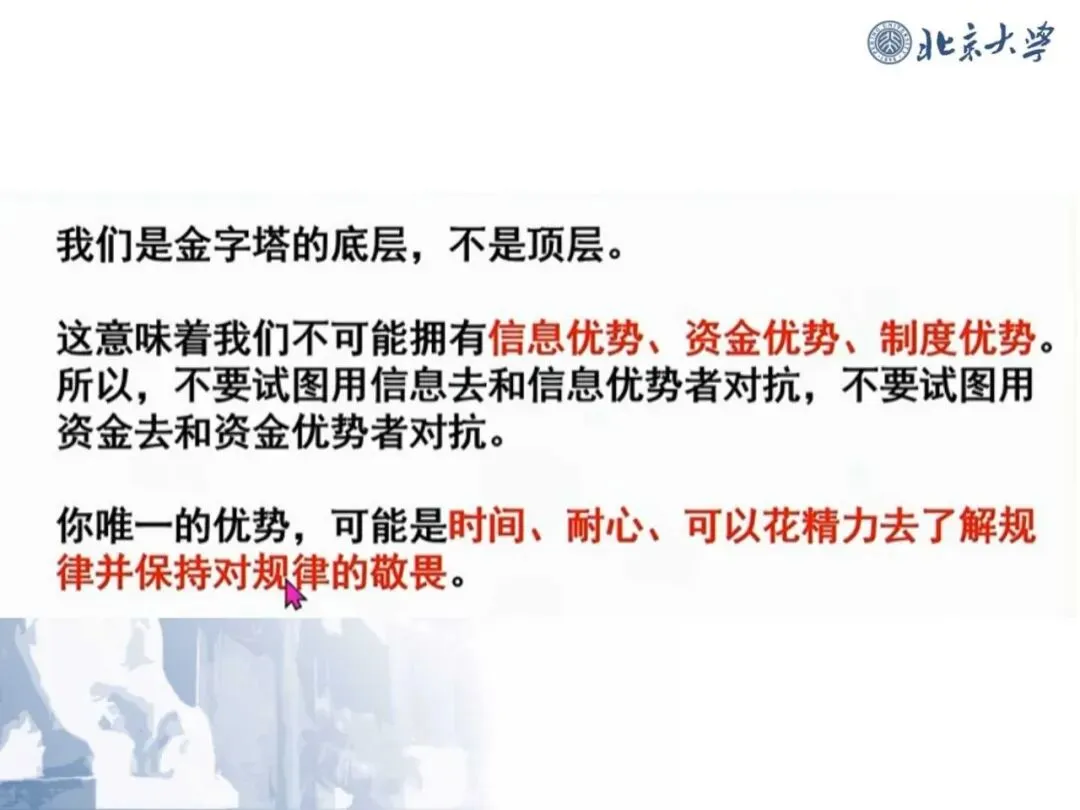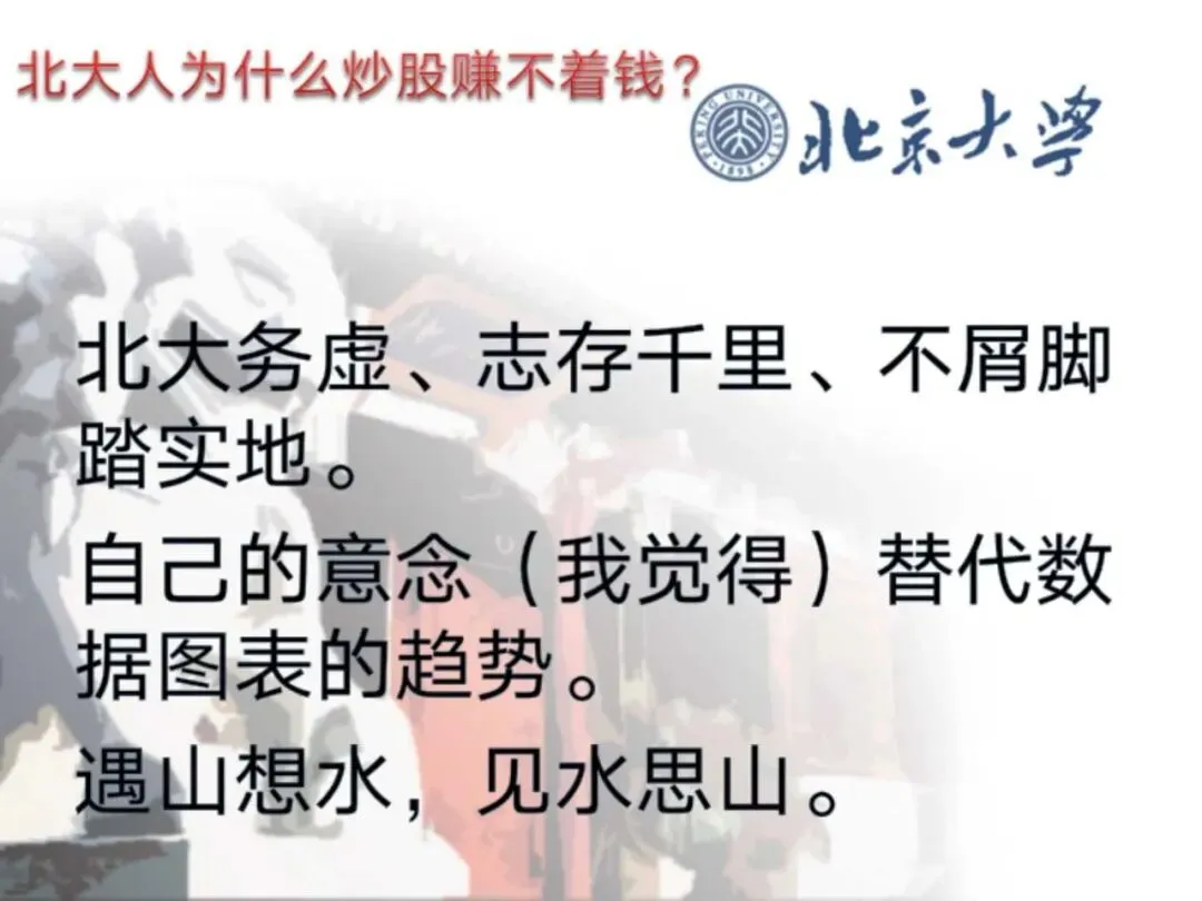 一份来自北京大学《地震概论》课的PPT《炒股挣钱》在全网刷屏。令人意外的是,主讲人并非金融系教授,而是北大地球与空间科学学院的赵克常老师。这门原本讲地质和地震波的课,因为加入了硬核的投资逻辑,瞬间成了全网热门“课”。