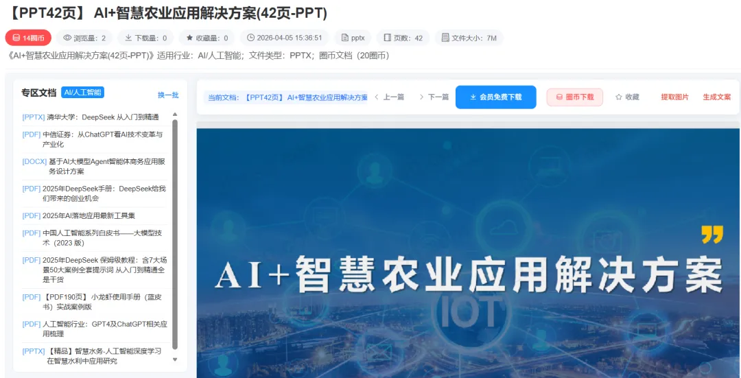 在农业数字化转型的浪潮中,AI技术正成为提升生产效率、优化资源管理的关键驱动力。我们为您精心整理了《AI+智慧农业应用解决方案》PPT文档,通过42页的深度解析,帮助从业者系统掌握AI在农业场景中的落地路径。