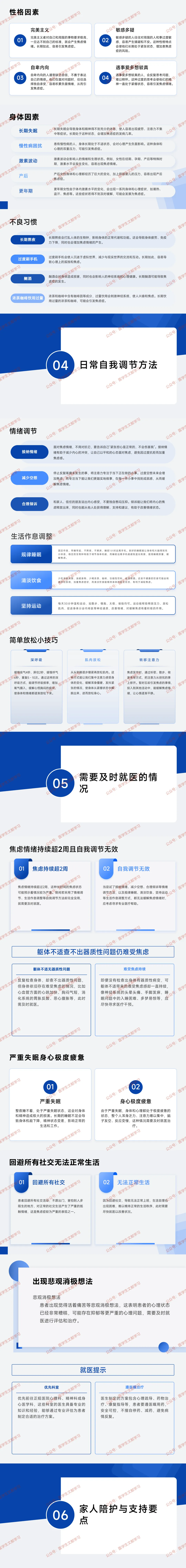 - 预后:规范治疗后多数可恢复正常生活,可单独发病或伴随失眠、抑郁、躯体不适。
