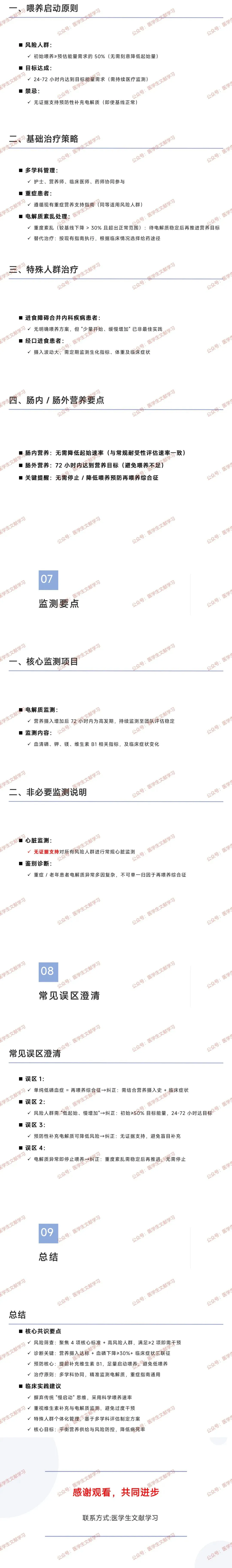 - 非必要监测:无证据支持对所有风险人群常规行心脏监测;重症 / 老年患者电解质异常不可单一归因于再喂养综合征。