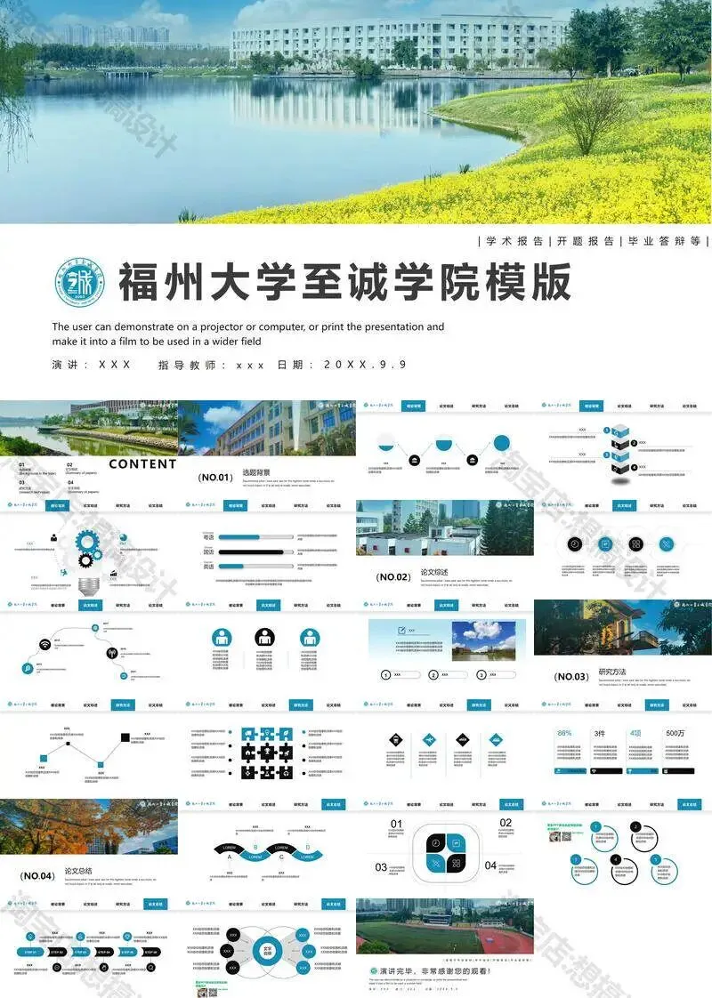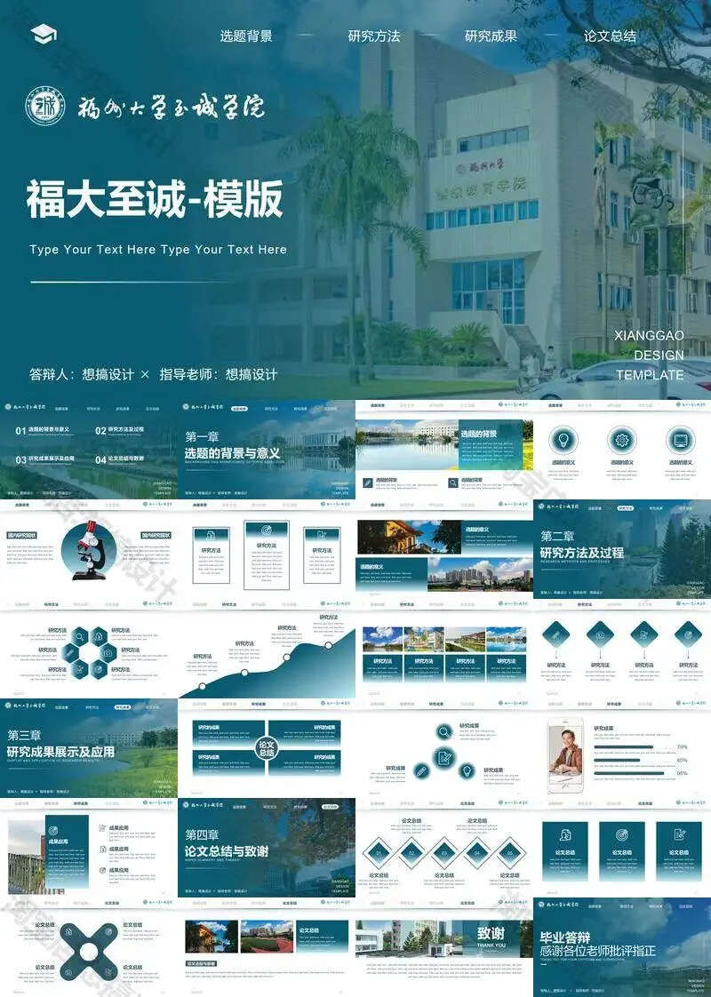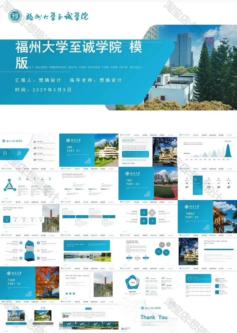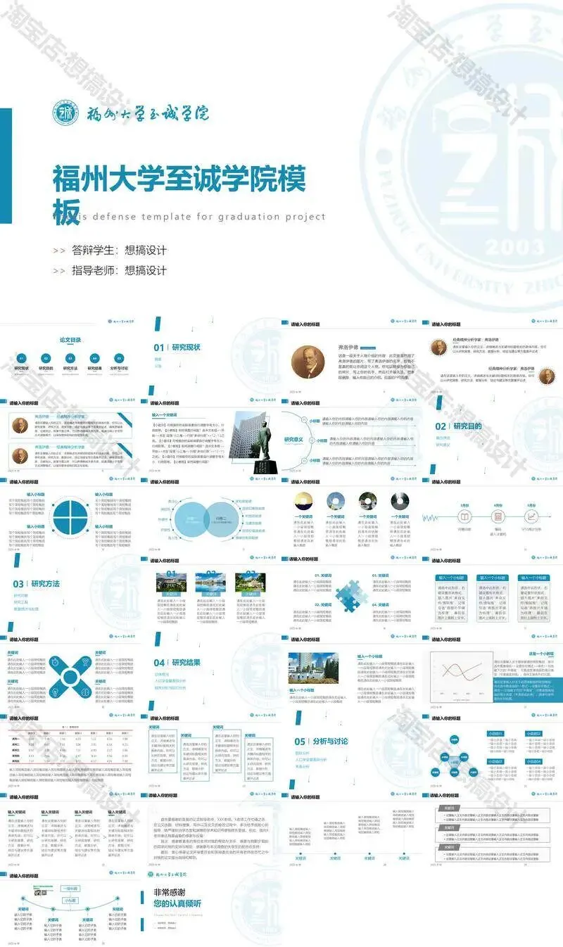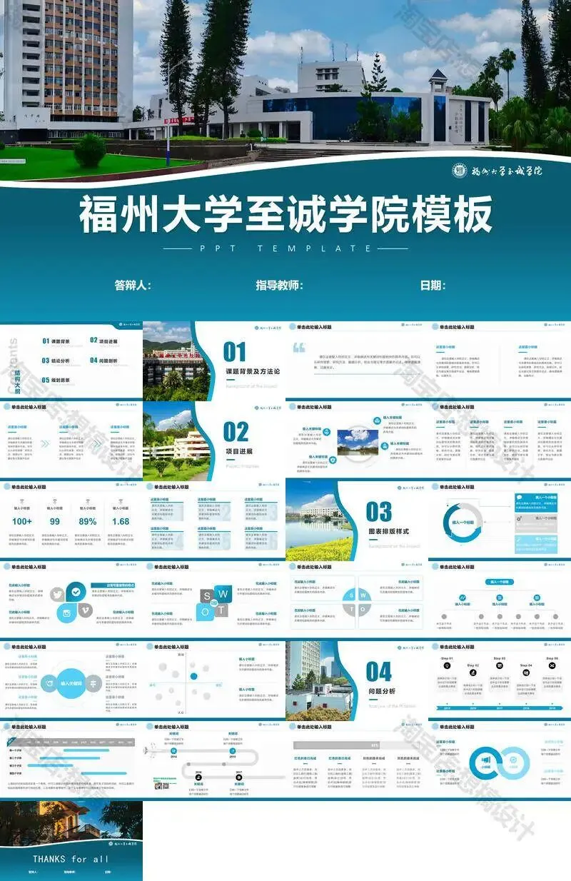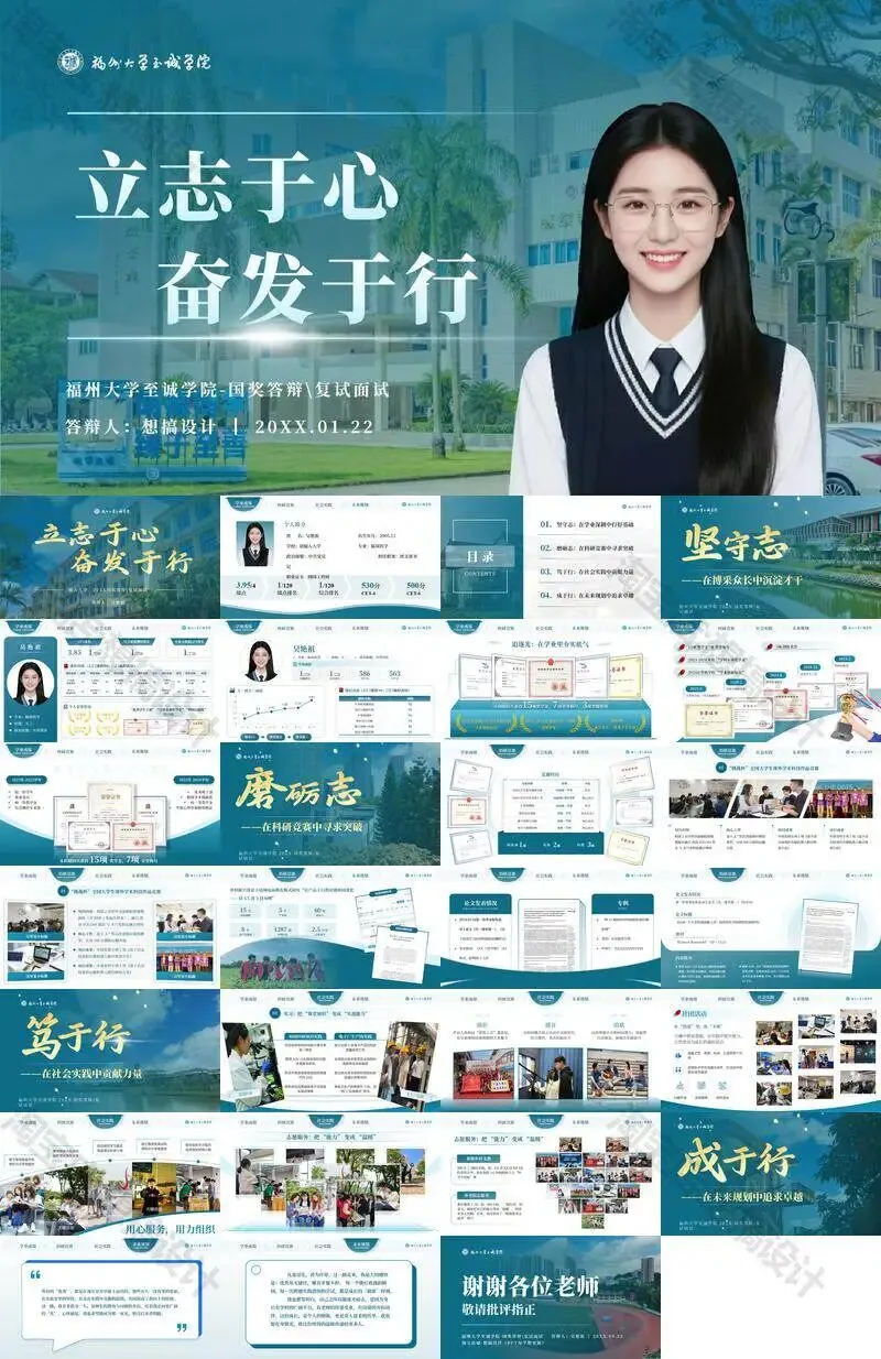 >福州大学至诚学院PPT模板复试毕业答辩汇报