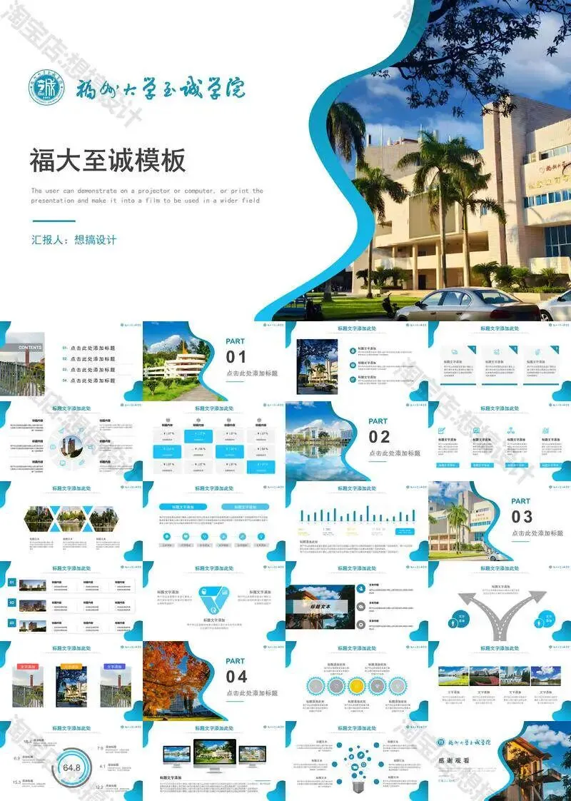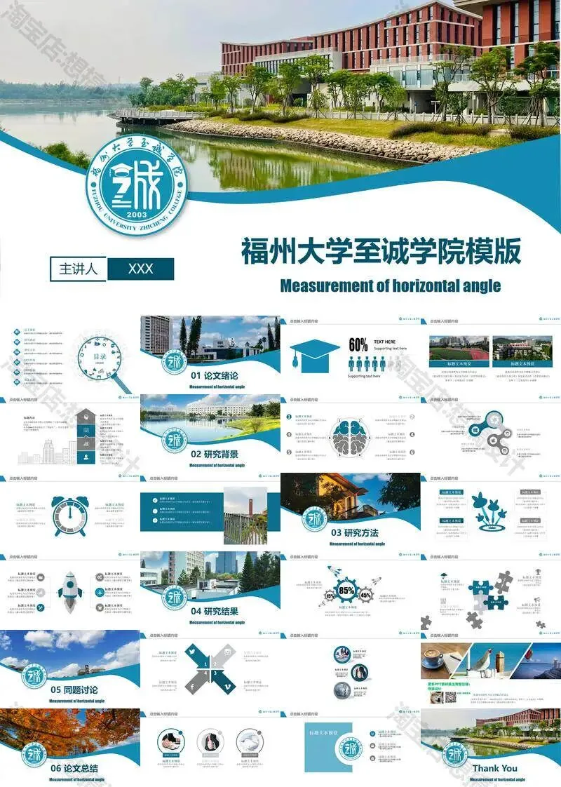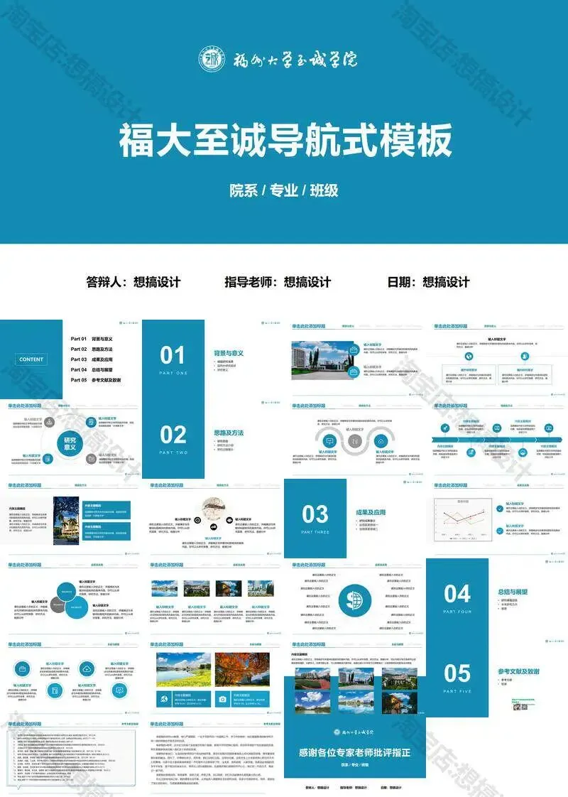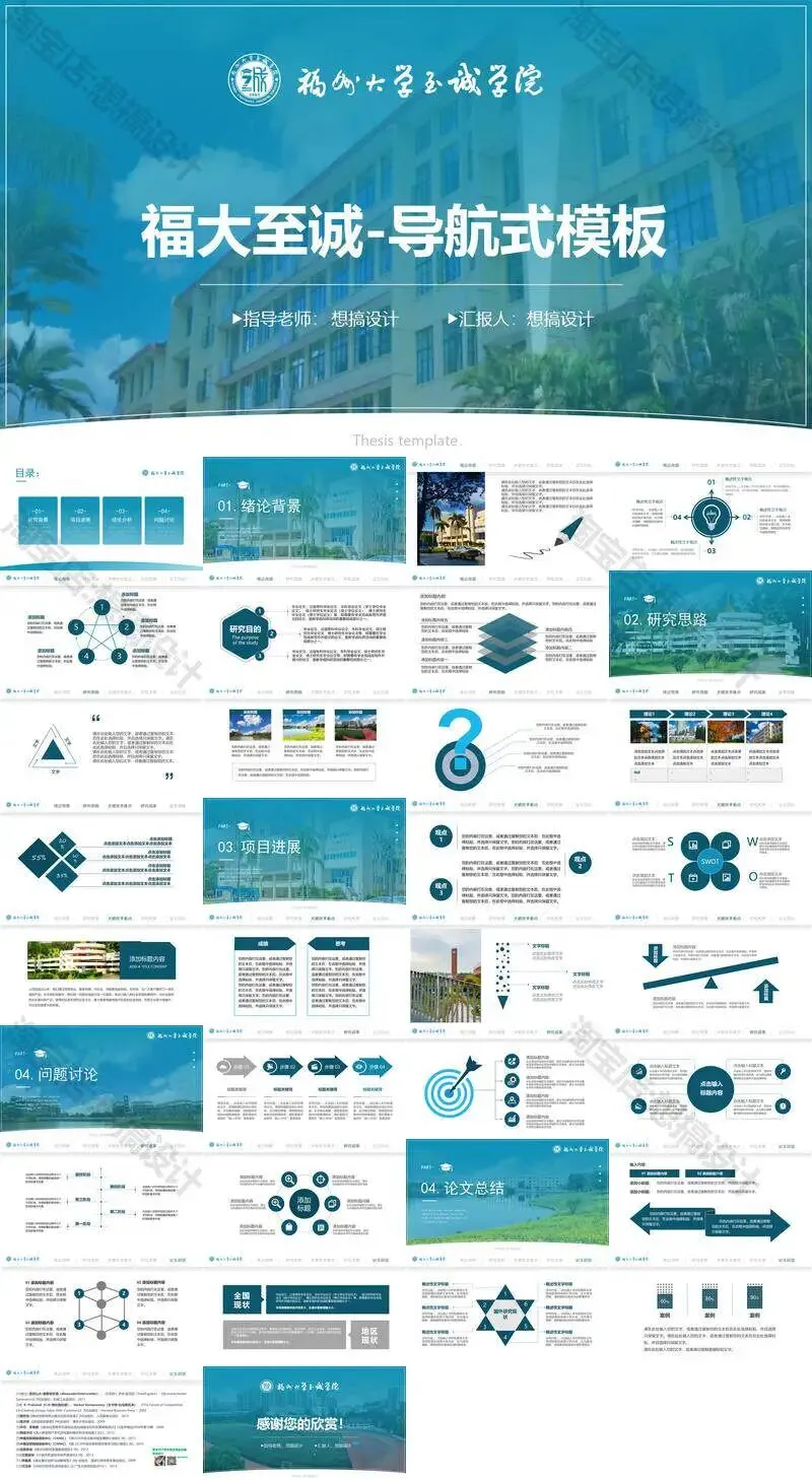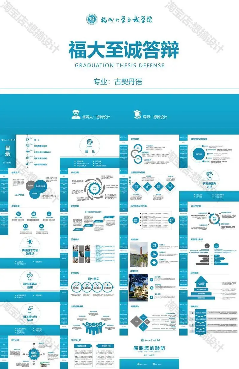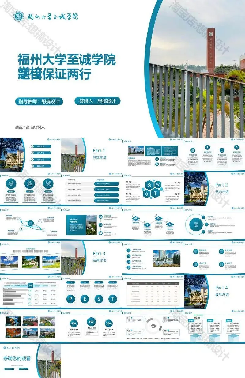 >福州大学至诚学院PPT模板复试毕业答辩汇报