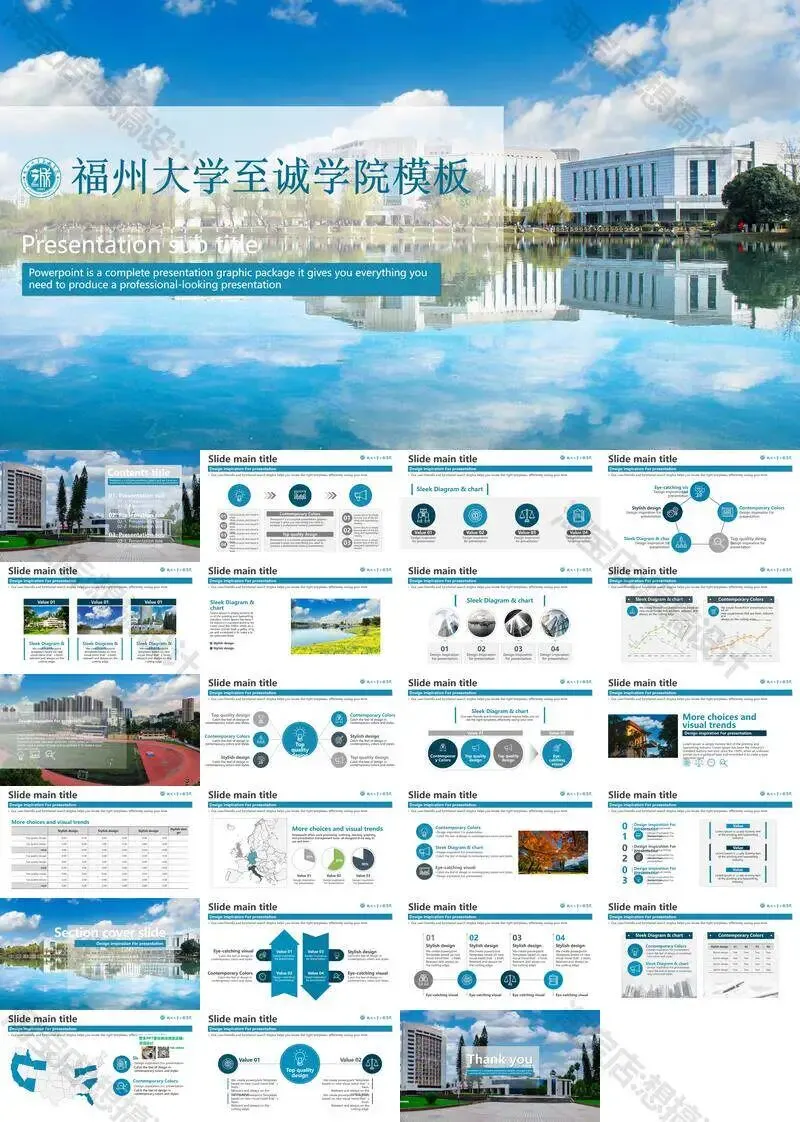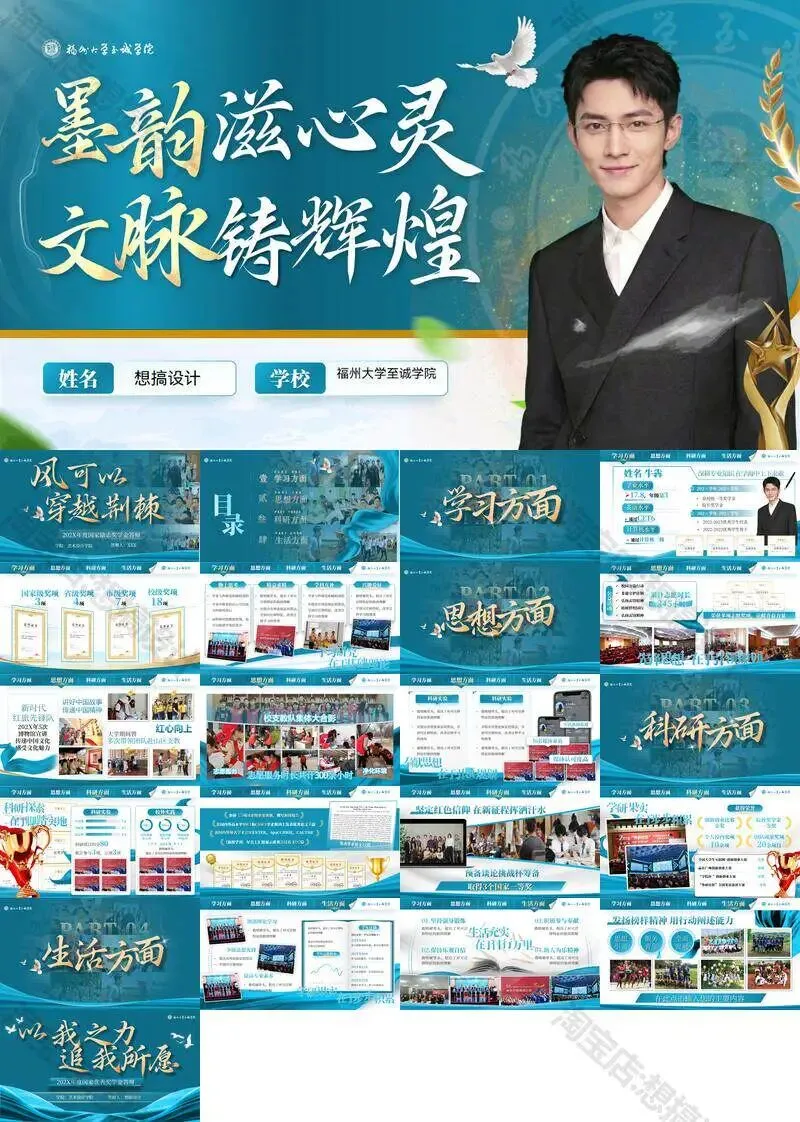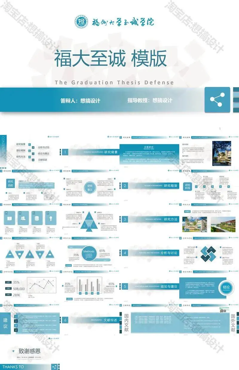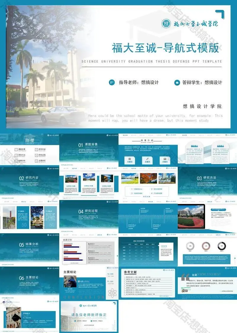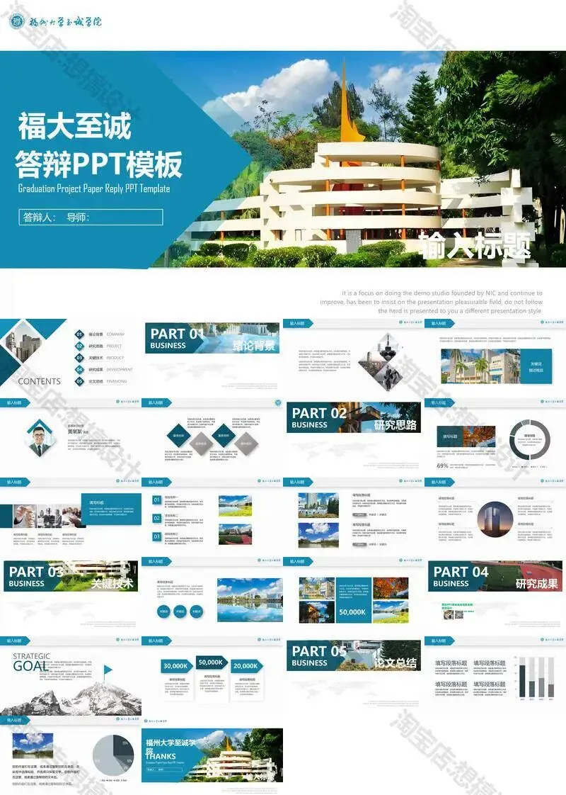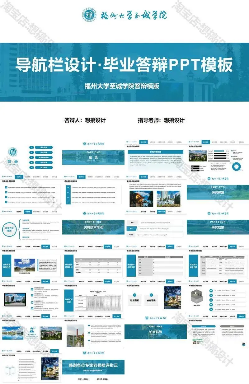 >福州大学至诚学院PPT模板复试毕业答辩汇报