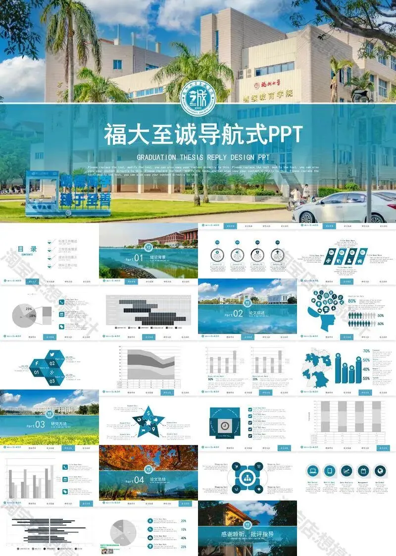福州大学至诚学院PPT模板复试毕业答辩汇报