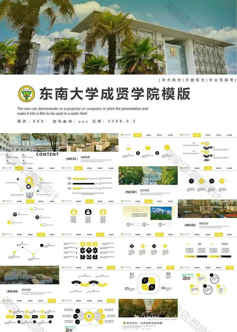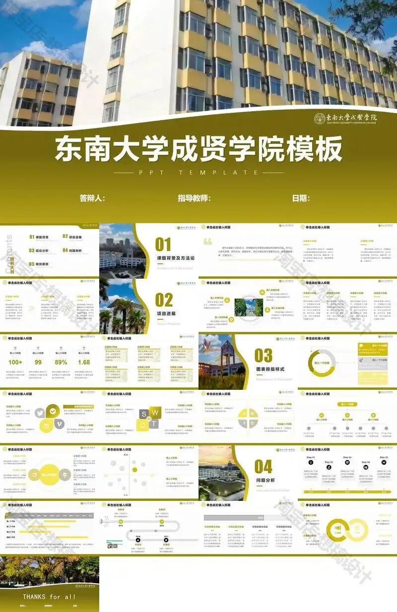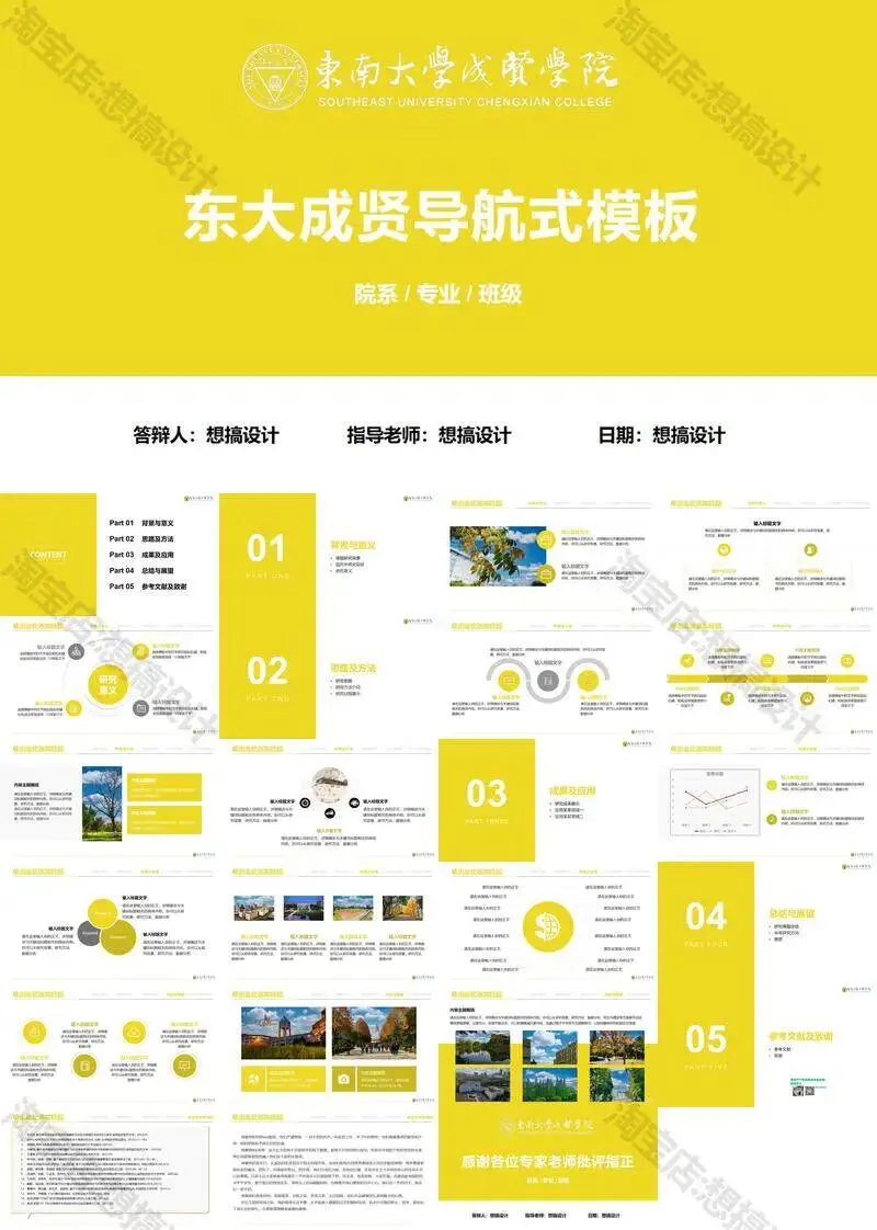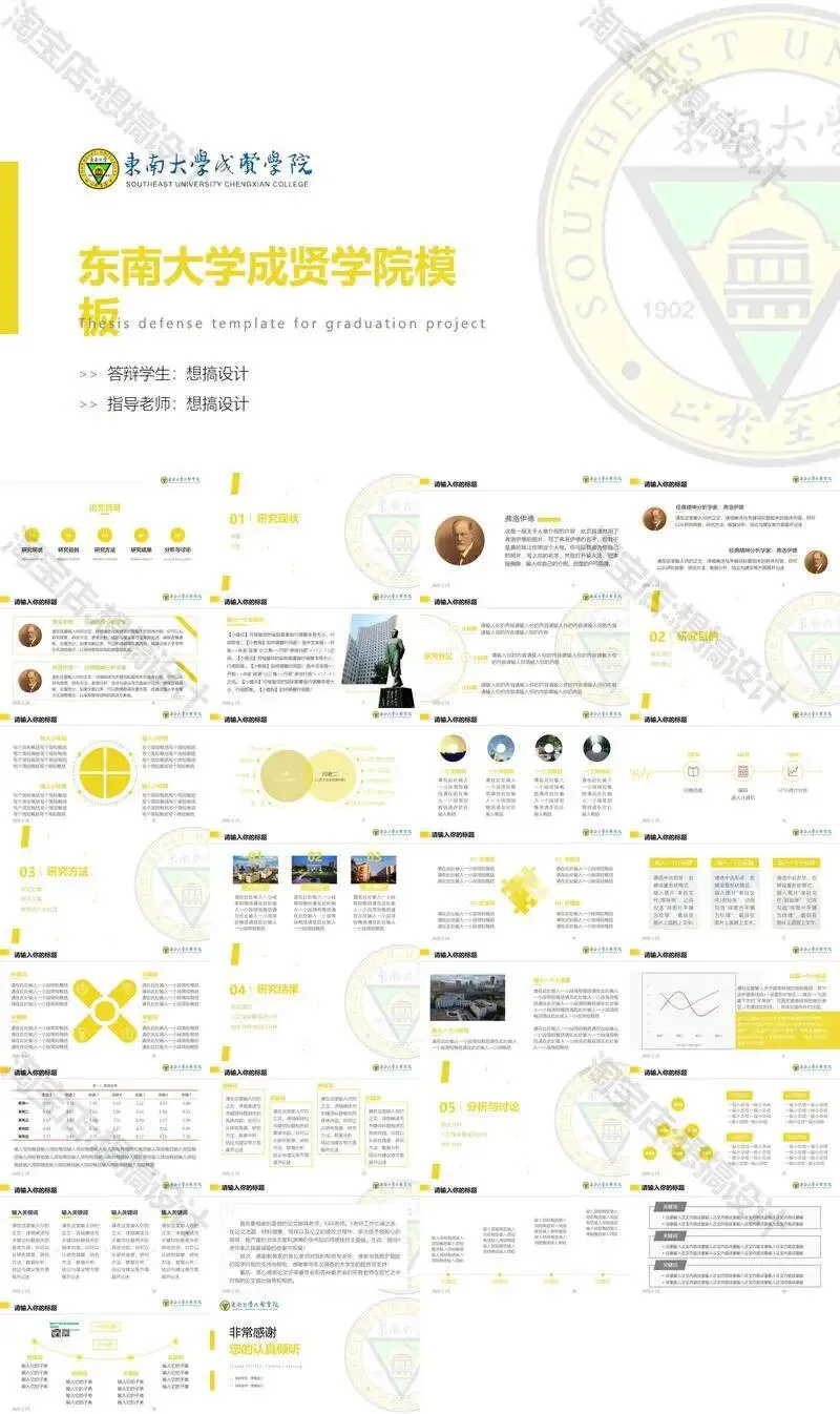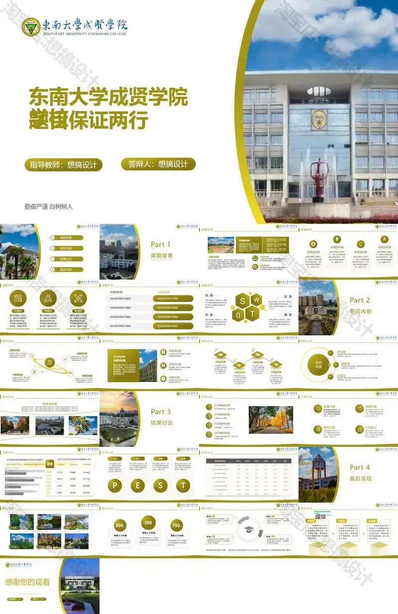 >东南大学成贤学院PPT模板毕业答辩课题汇报