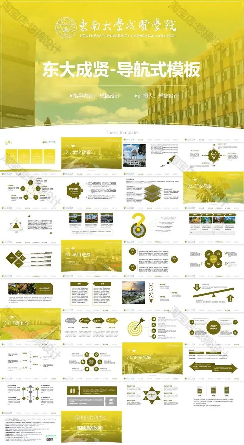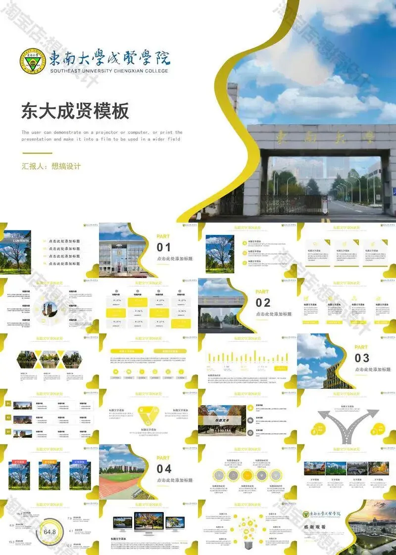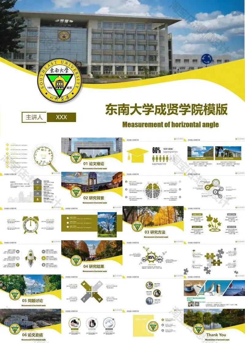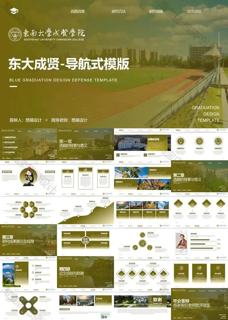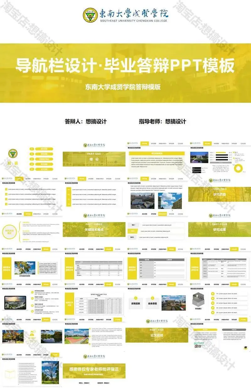 >东南大学成贤学院PPT模板毕业答辩课题汇报