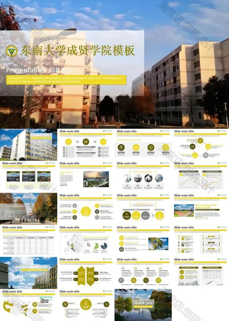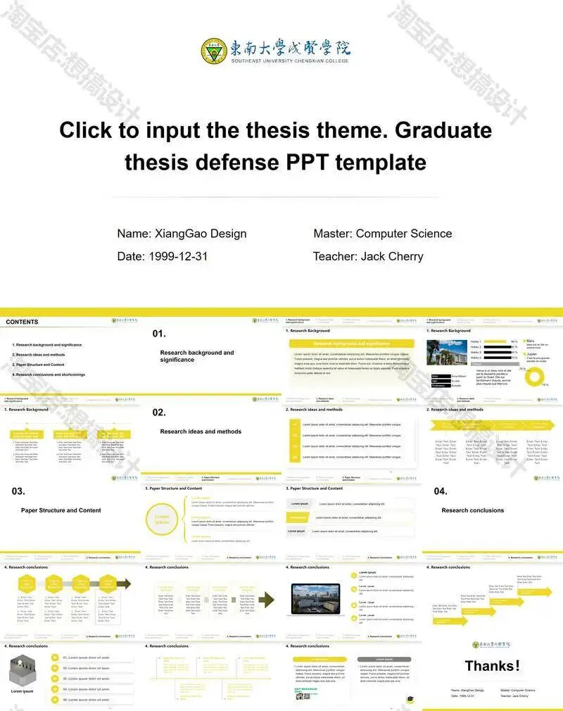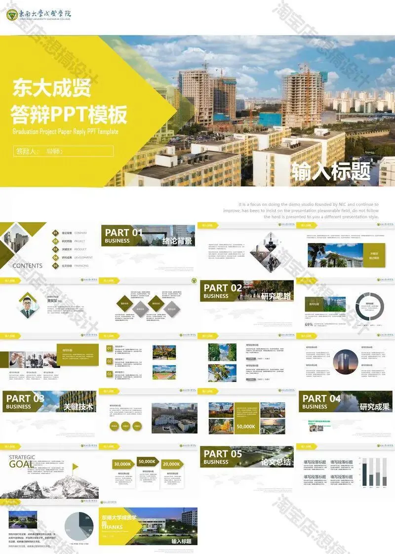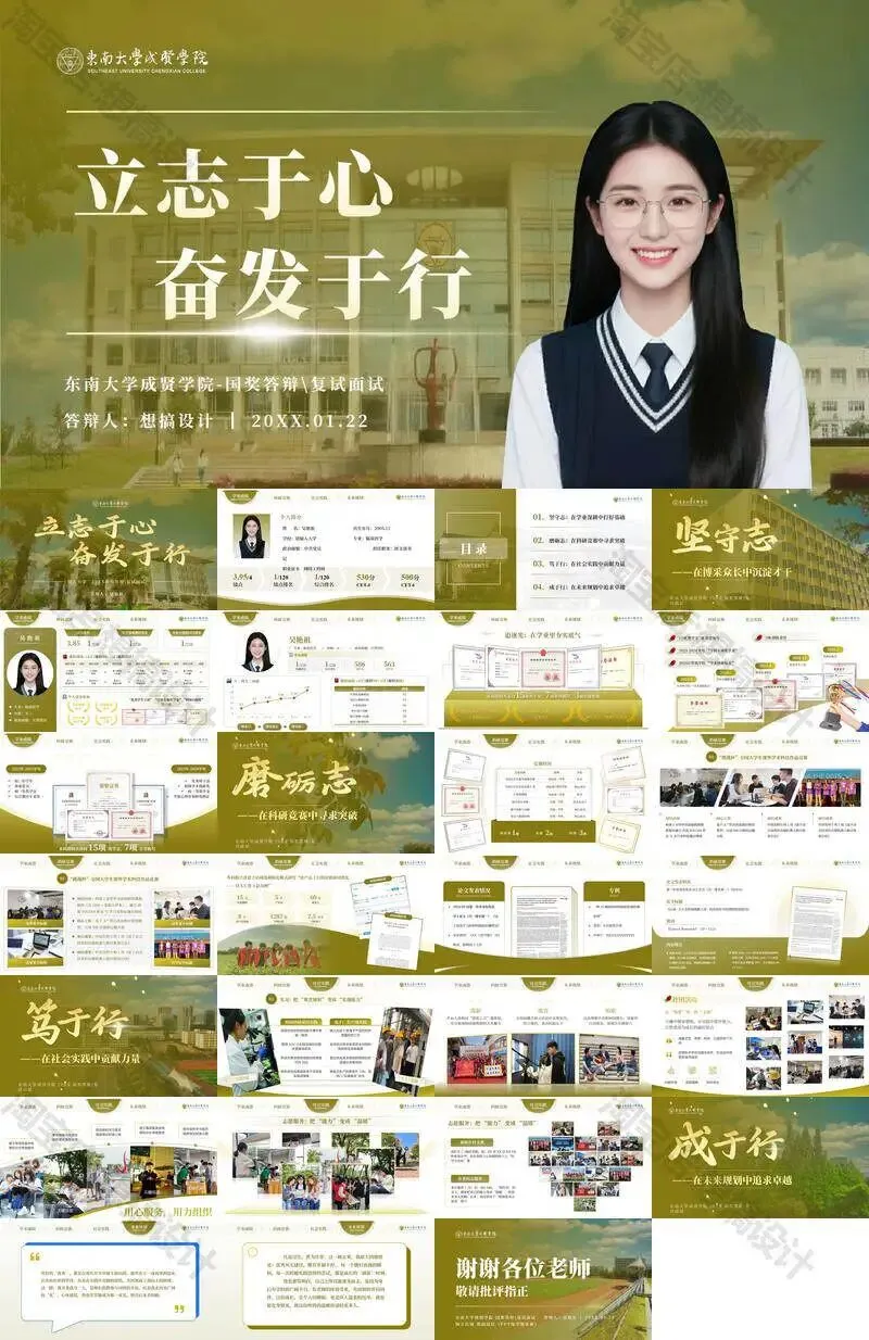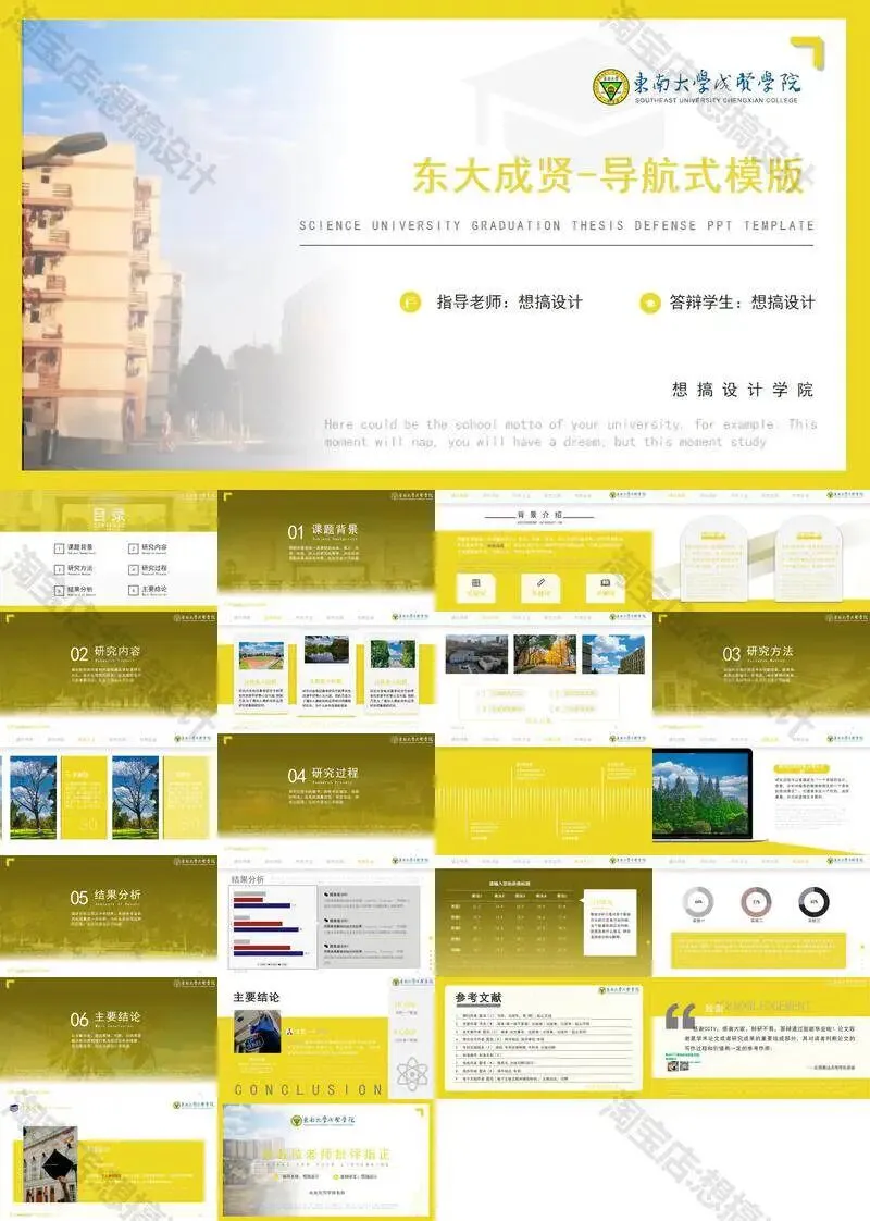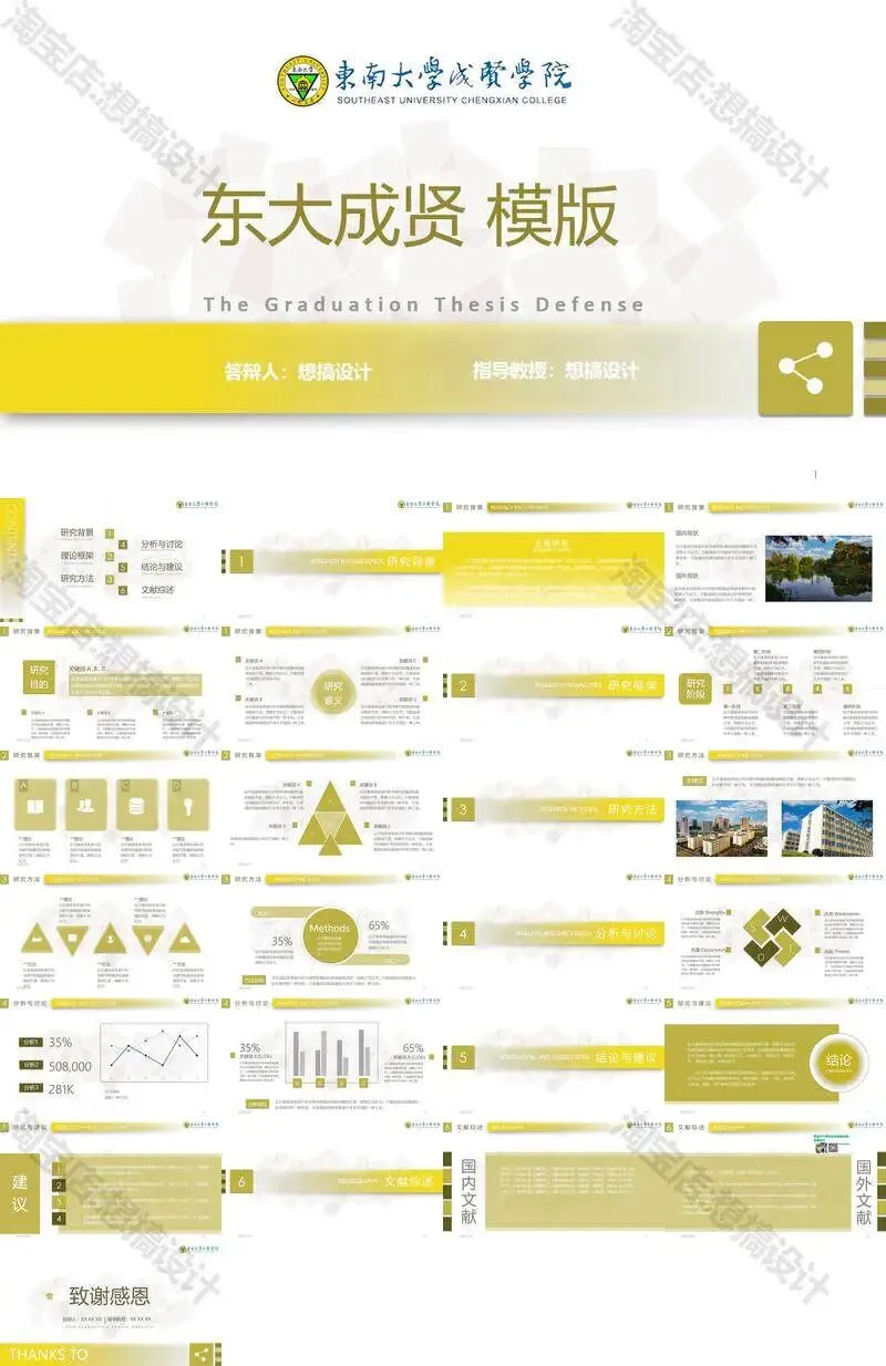 >东南大学成贤学院PPT模板毕业答辩课题汇报