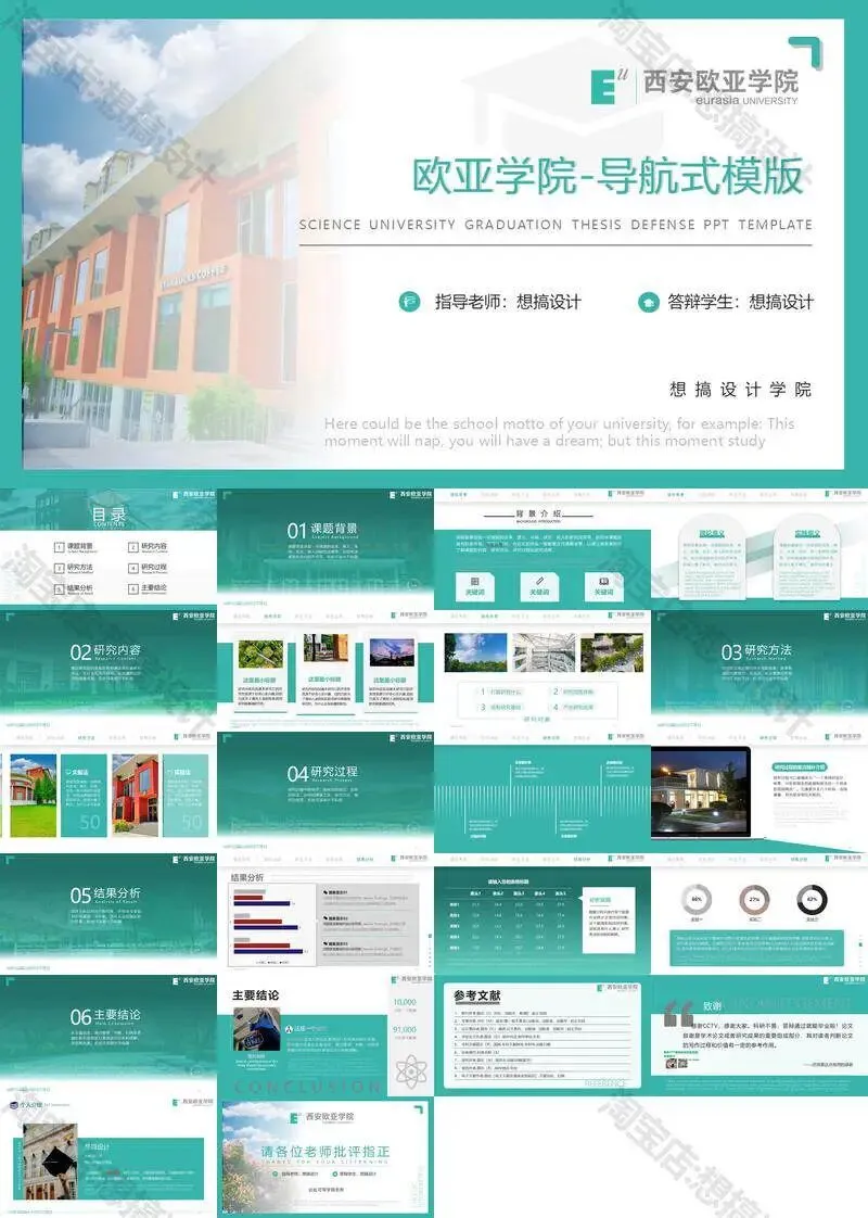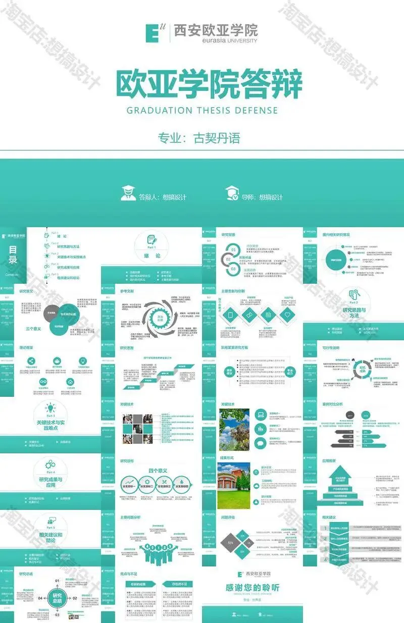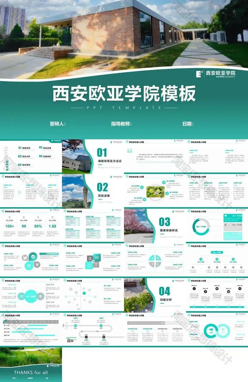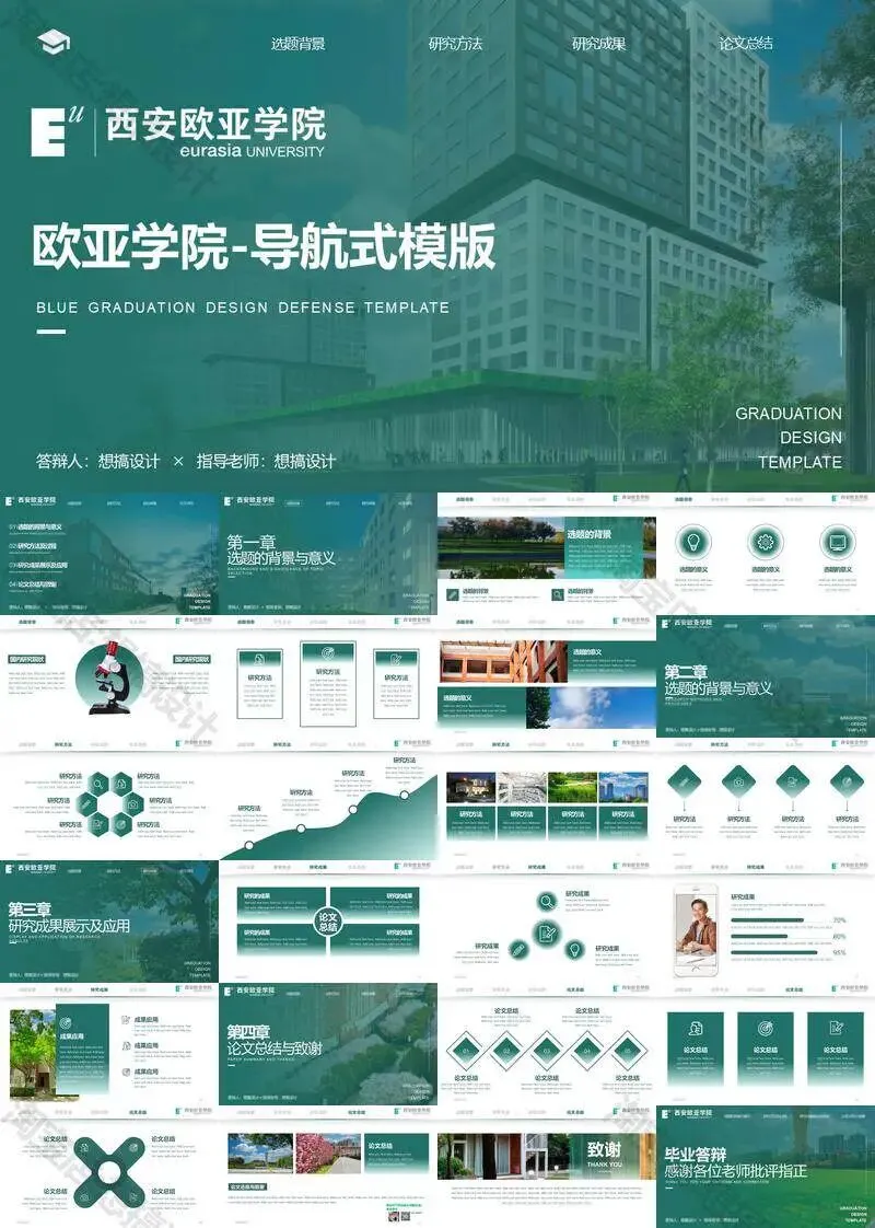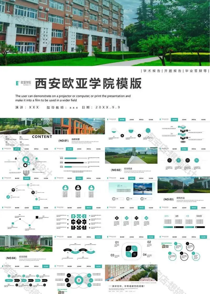 西安欧亚学院毕业答辩PPT模板汇报幻灯片课件总结大学生作品