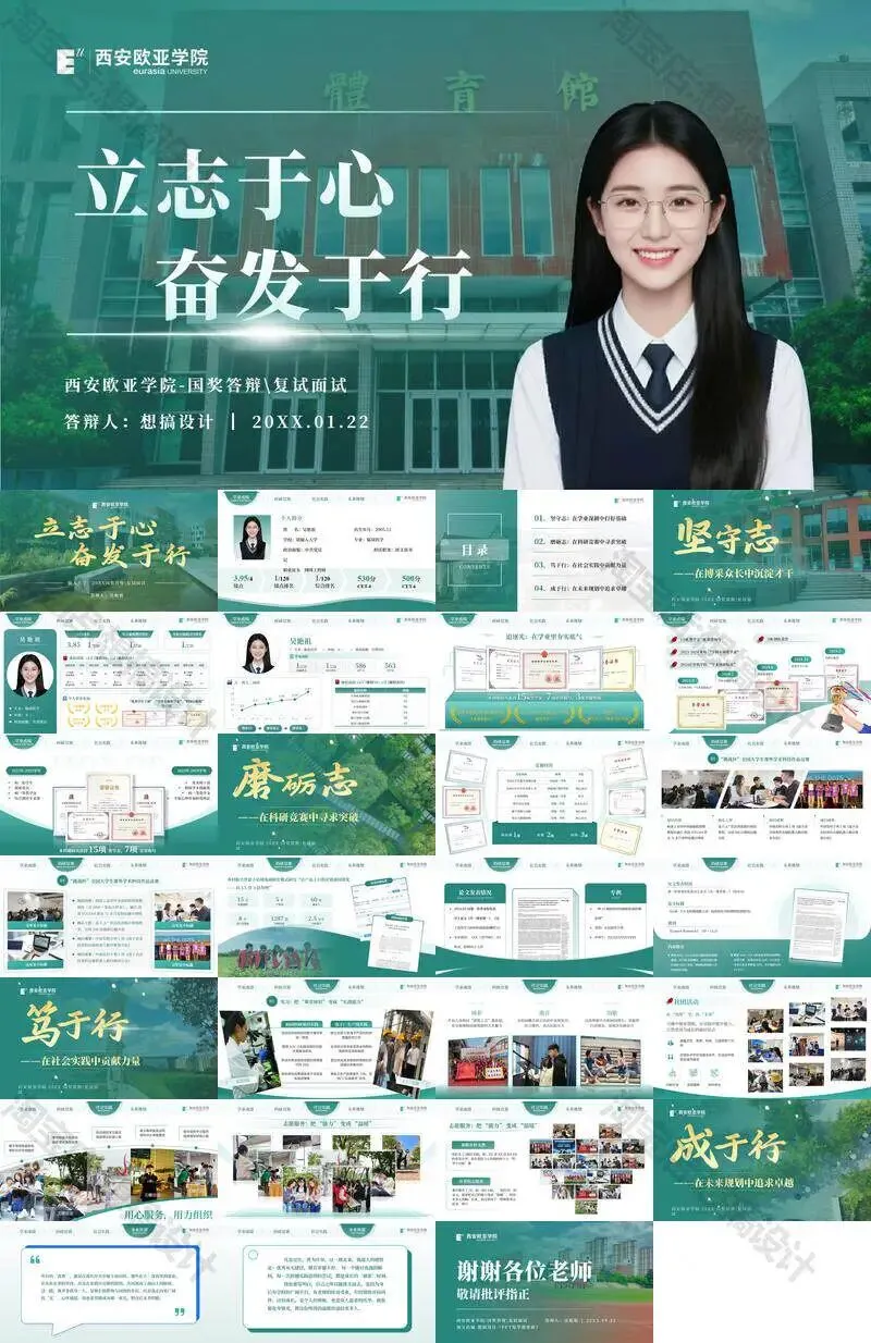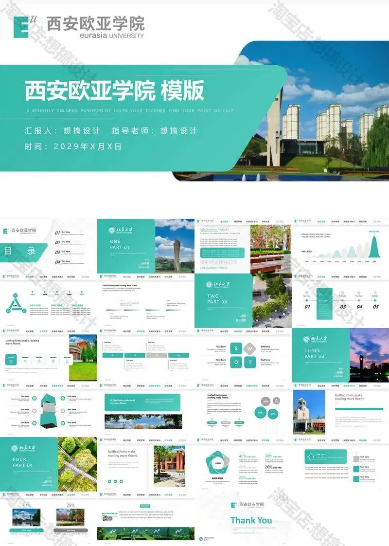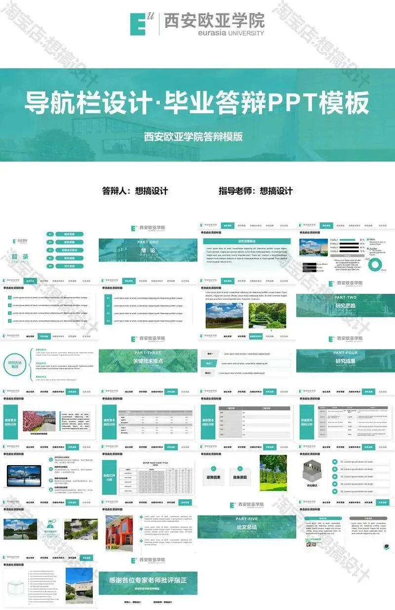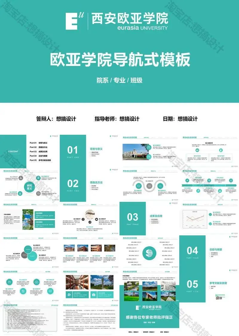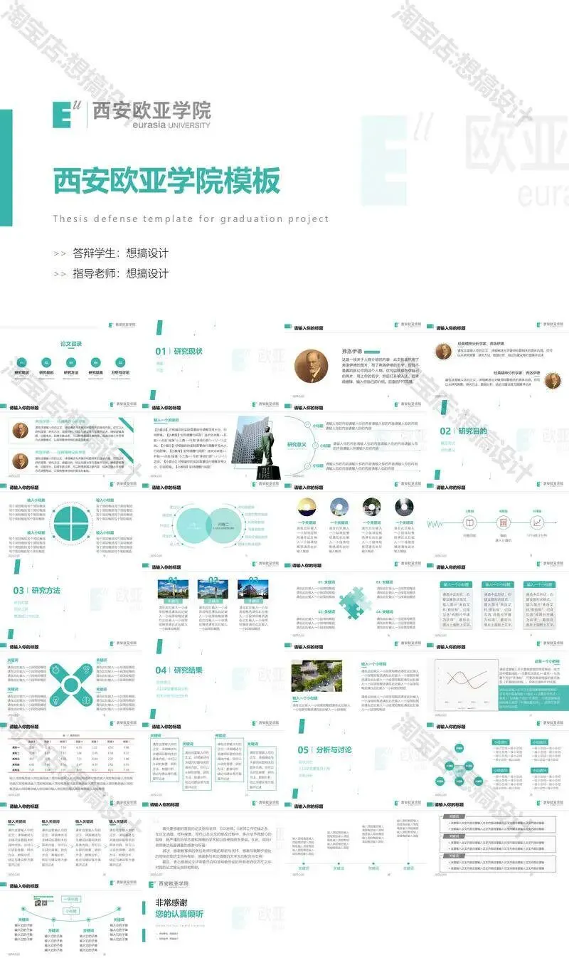 西安欧亚学院毕业答辩PPT模板汇报幻灯片课件总结大学生作品