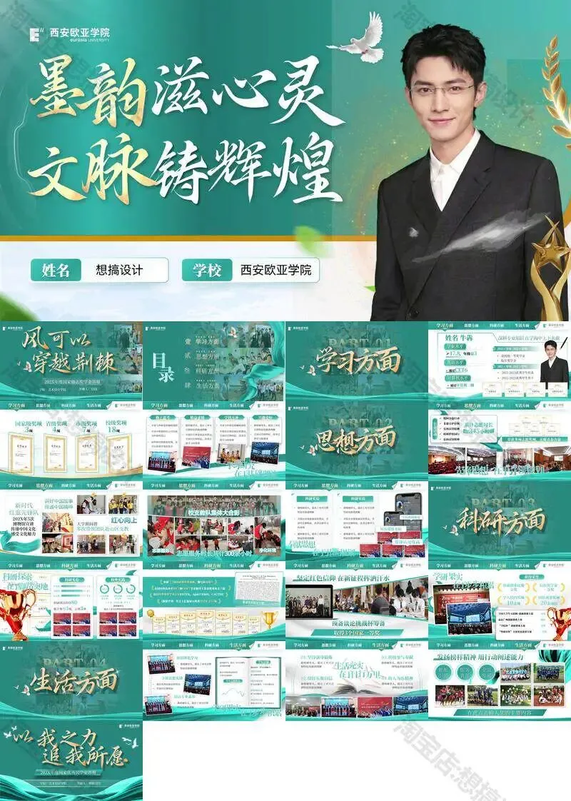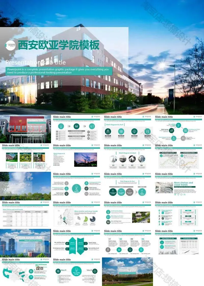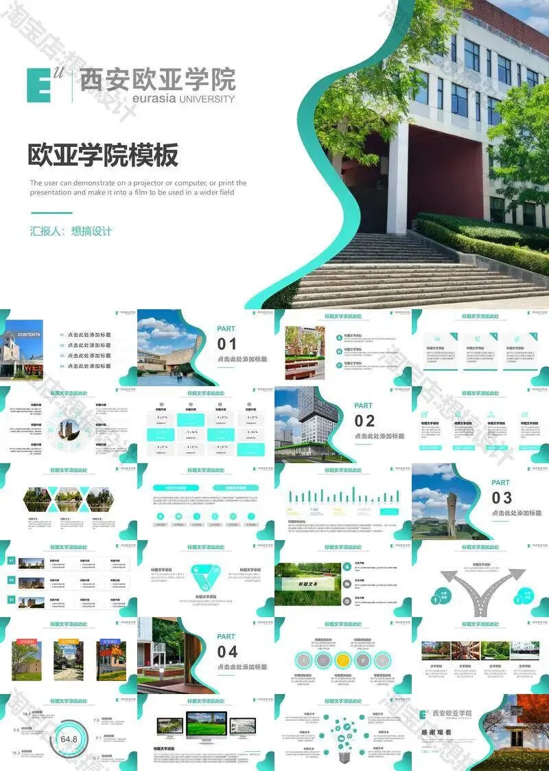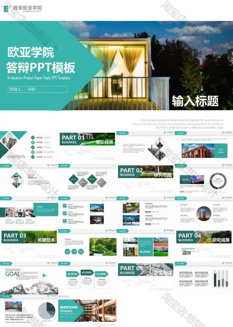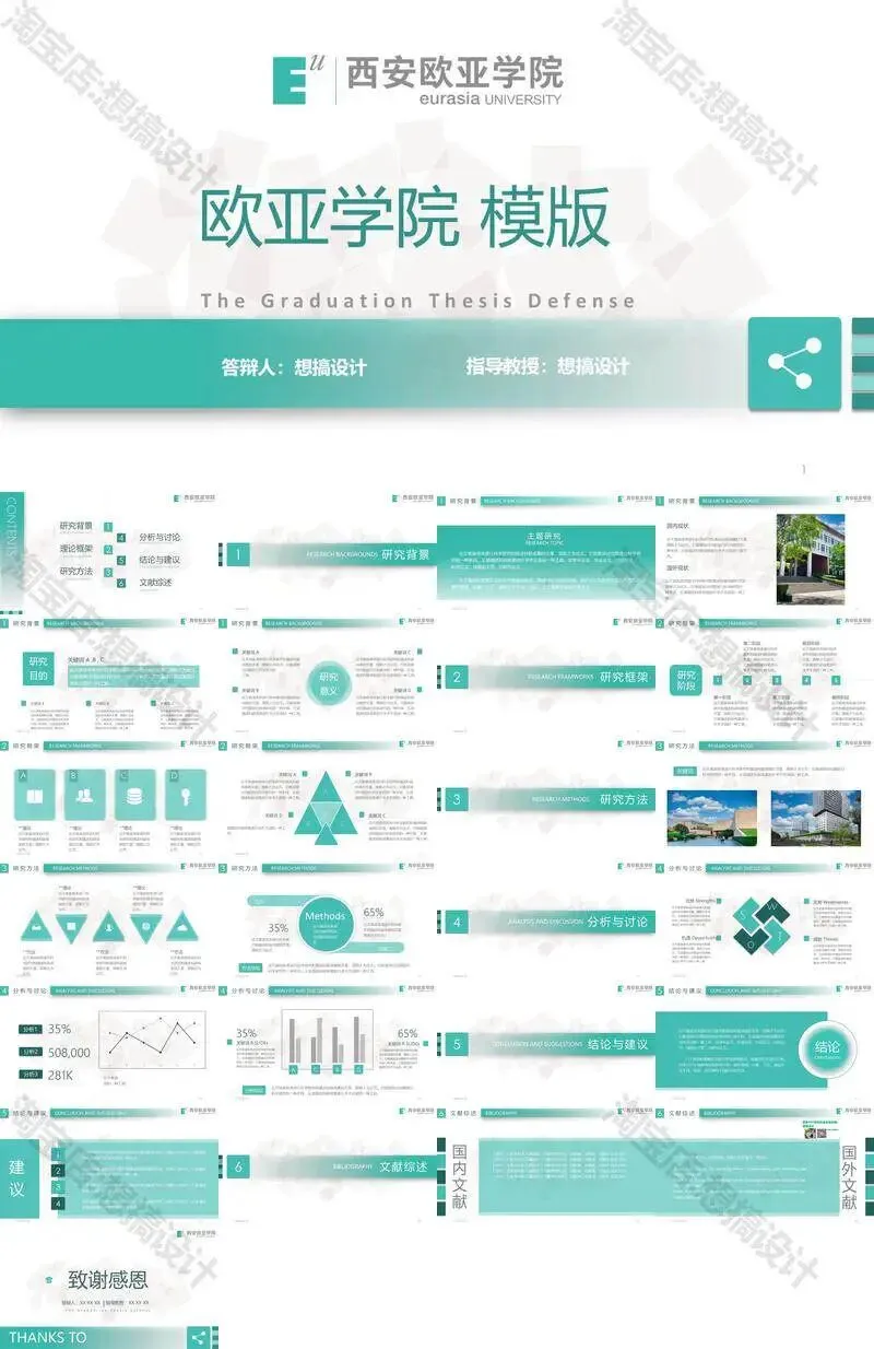 西安欧亚学院毕业答辩PPT模板汇报幻灯片课件总结大学生作品
