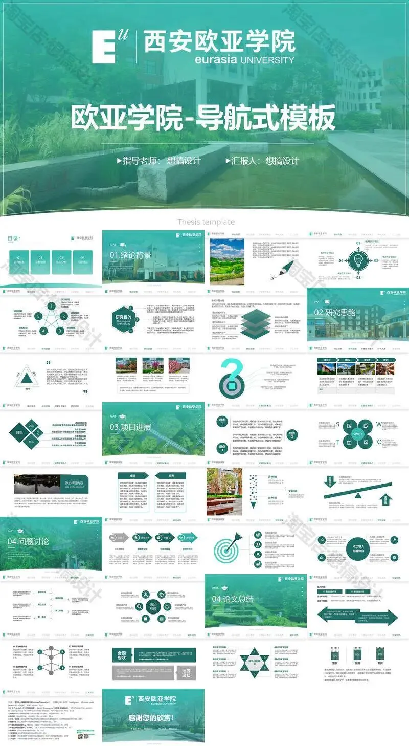 >西安欧亚学院毕业答辩PPT模板汇报幻灯片课件总结大学生作品