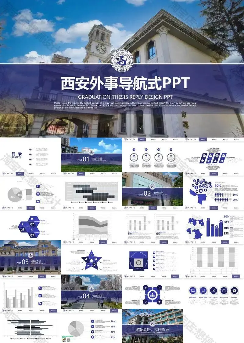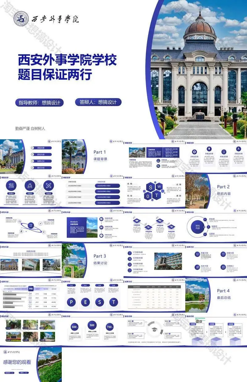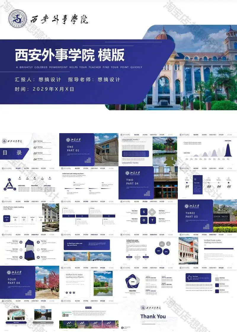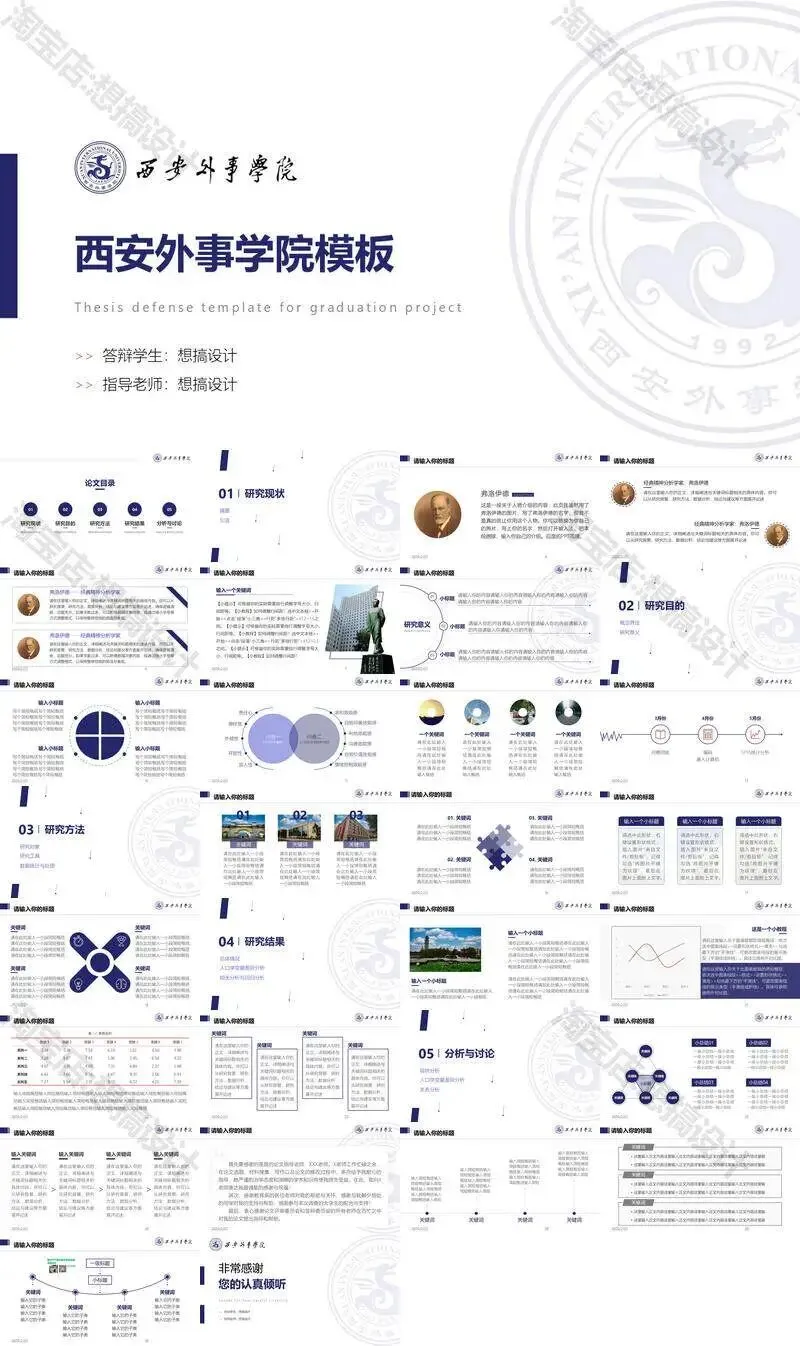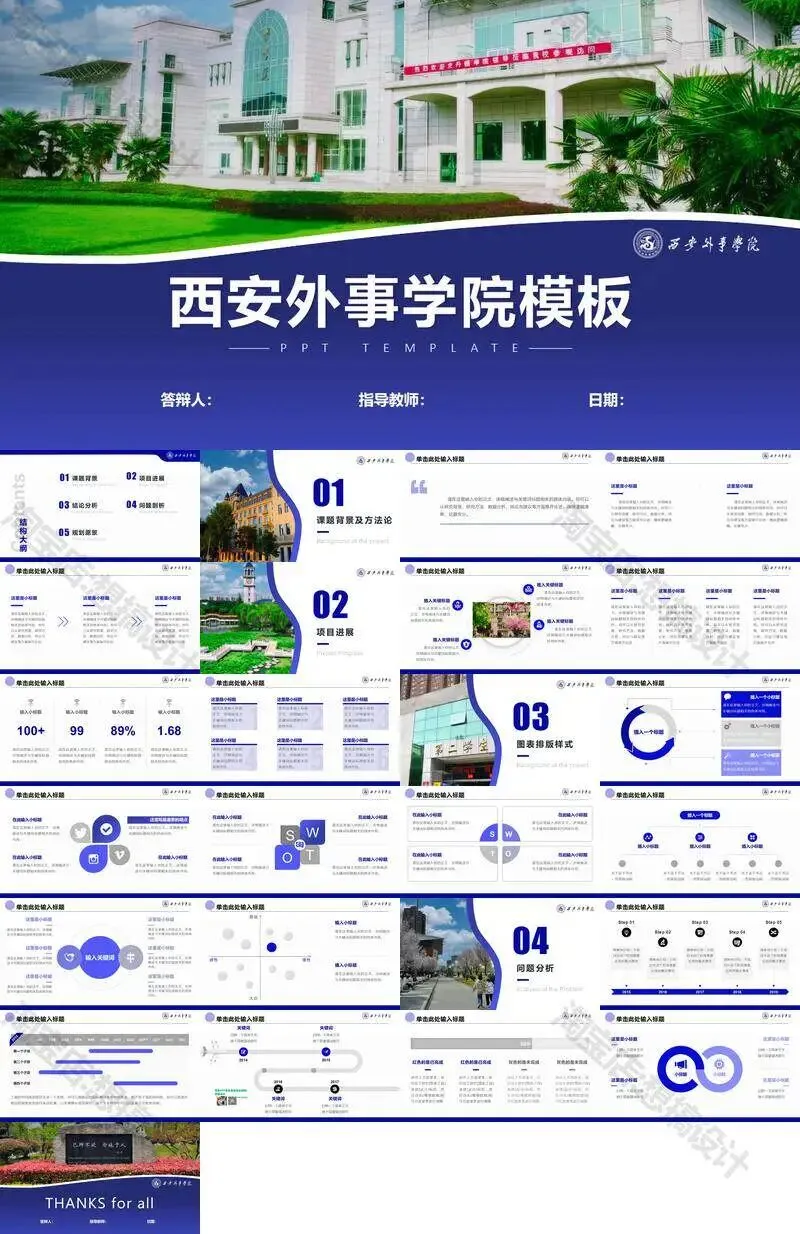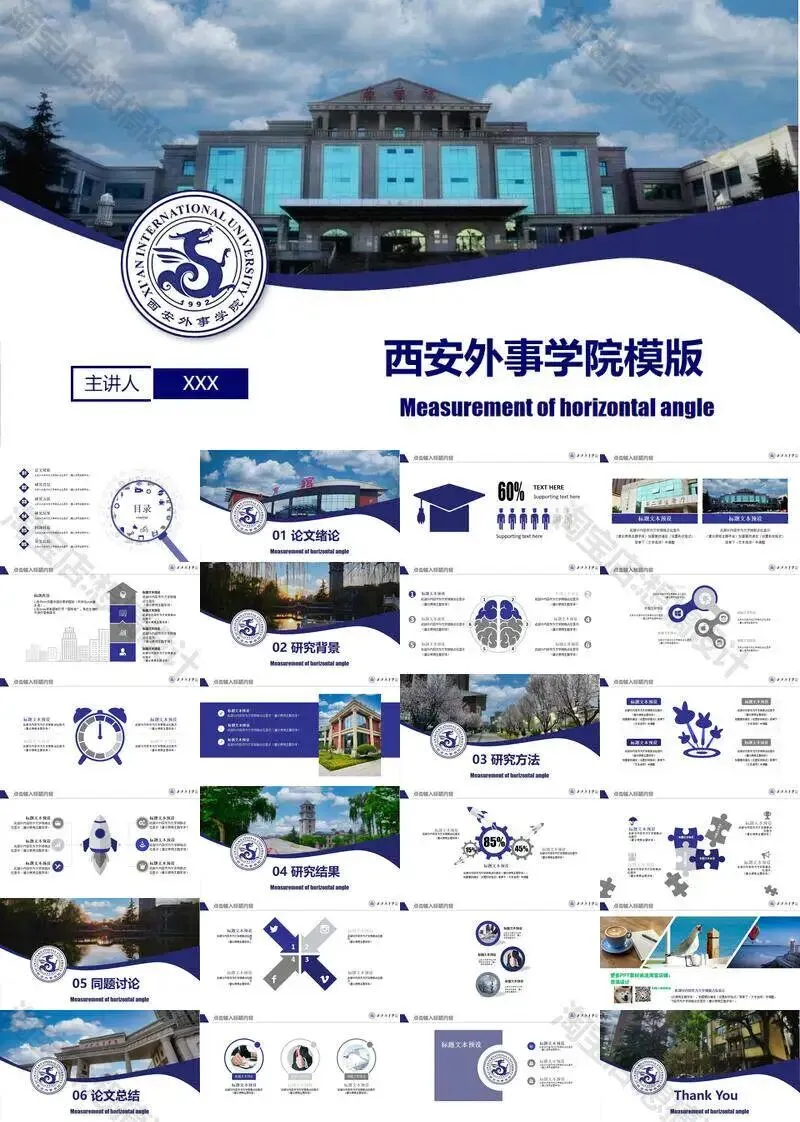 西安外事学院毕业答辩PPT模板汇报幻灯片课件总结大学生作品