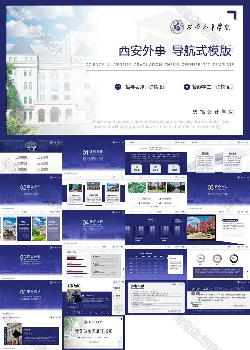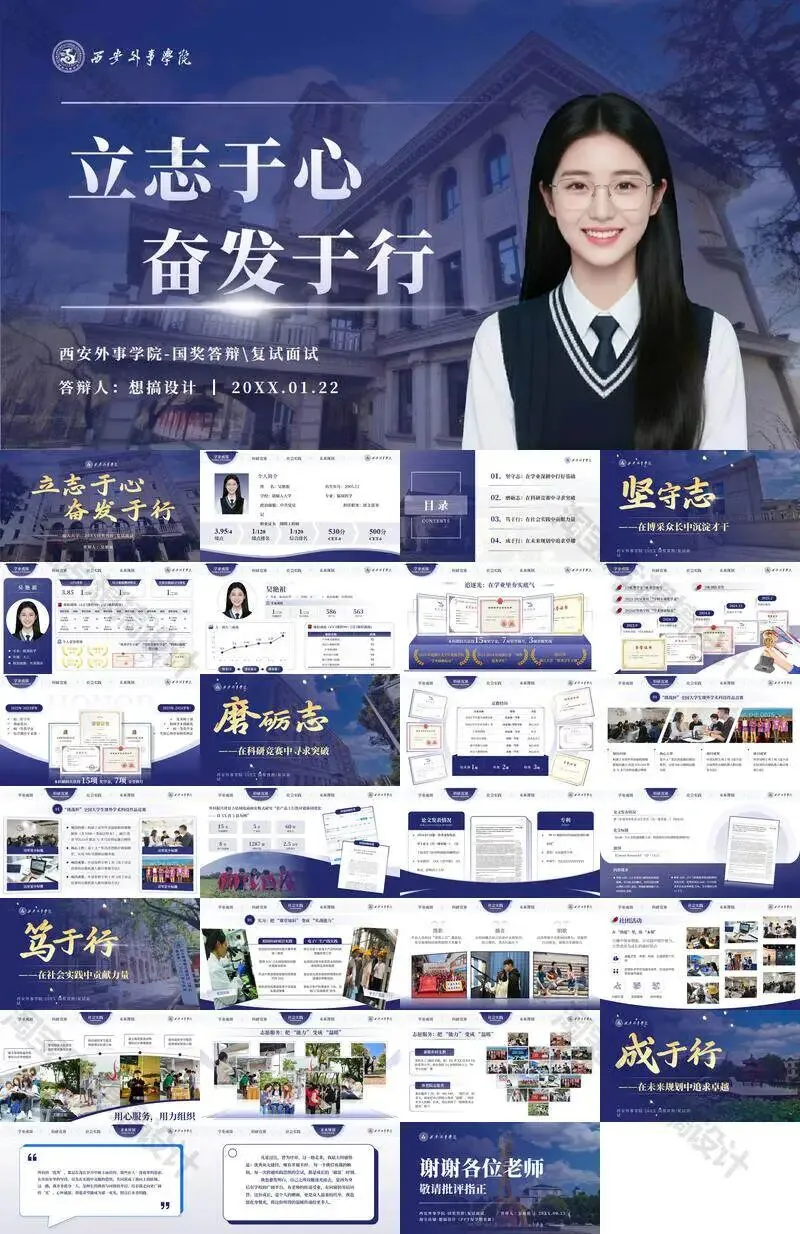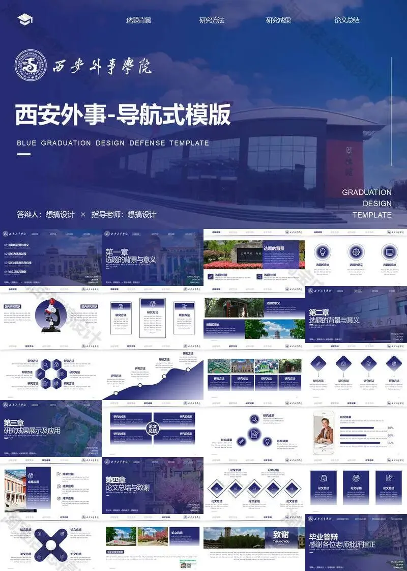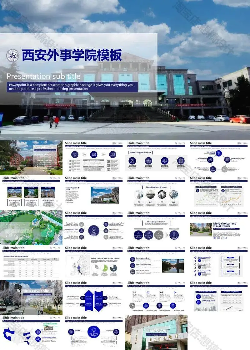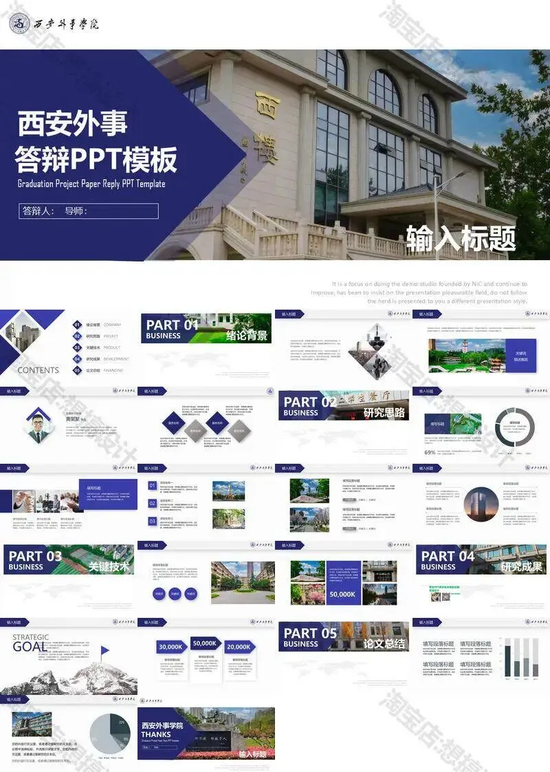 西安外事学院毕业答辩PPT模板汇报幻灯片课件总结大学生作品