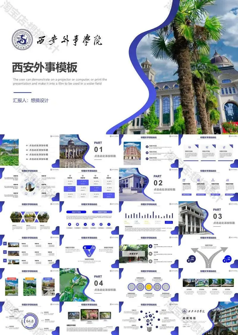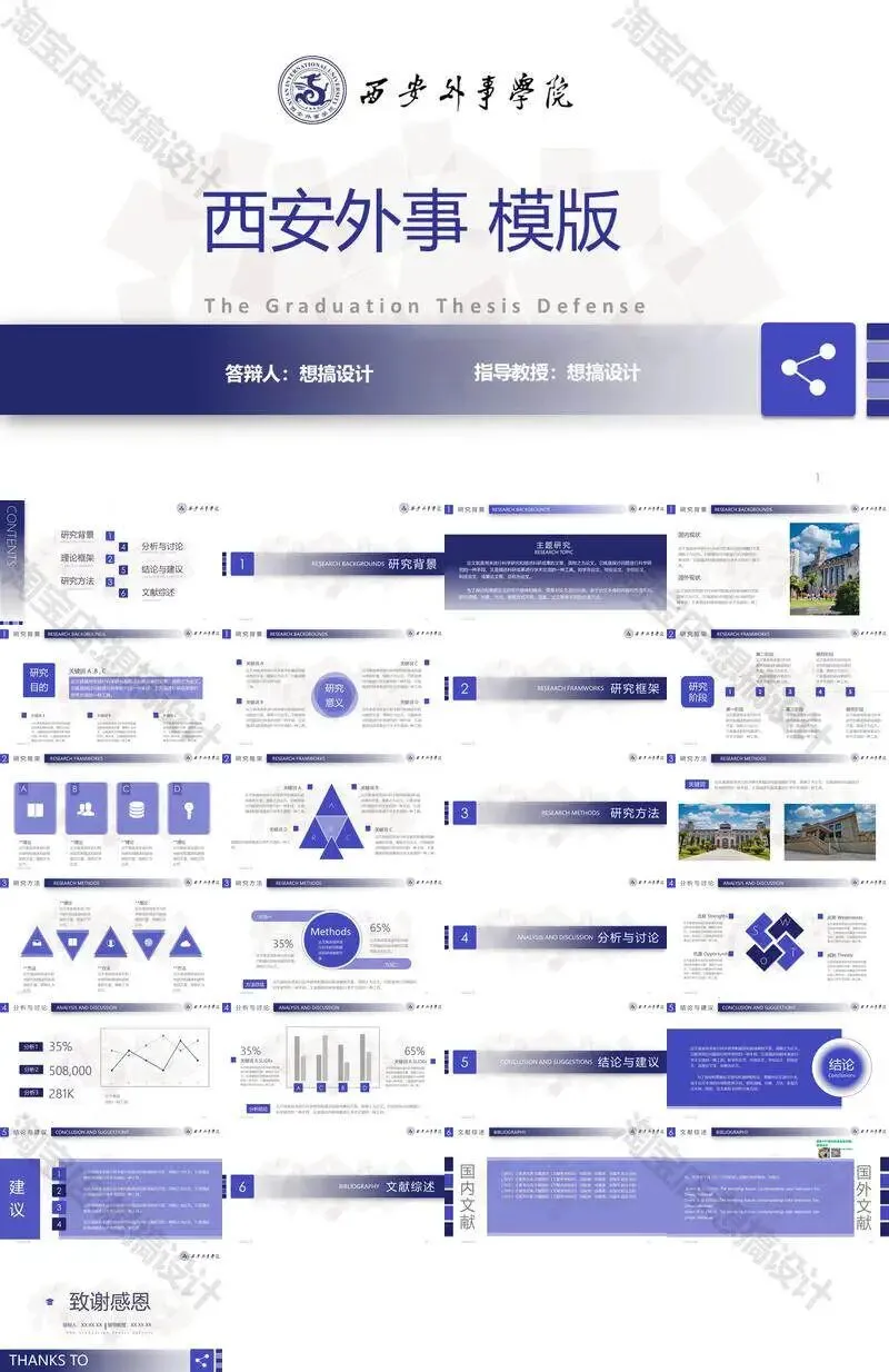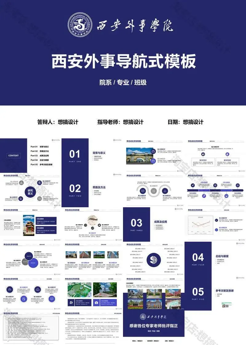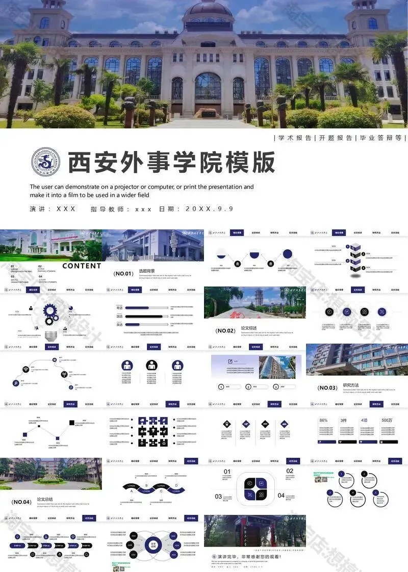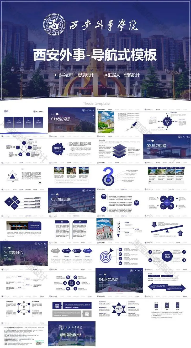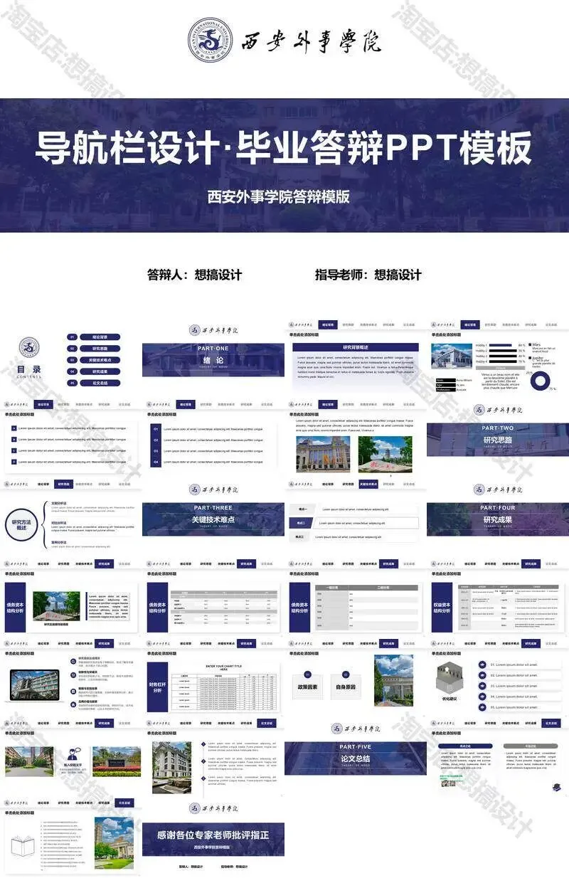 西安外事学院毕业答辩PPT模板汇报幻灯片课件总结大学生作品