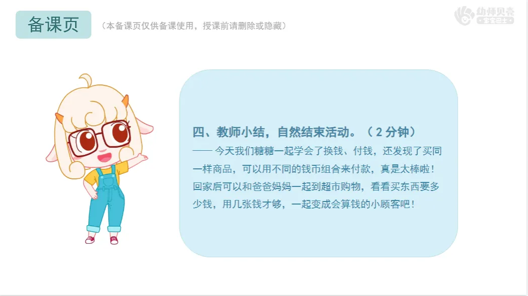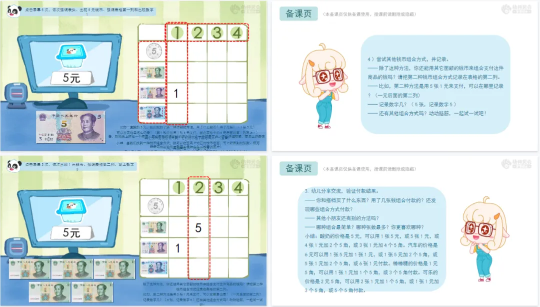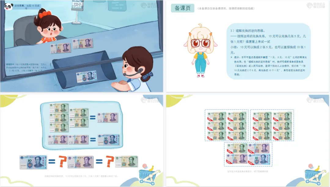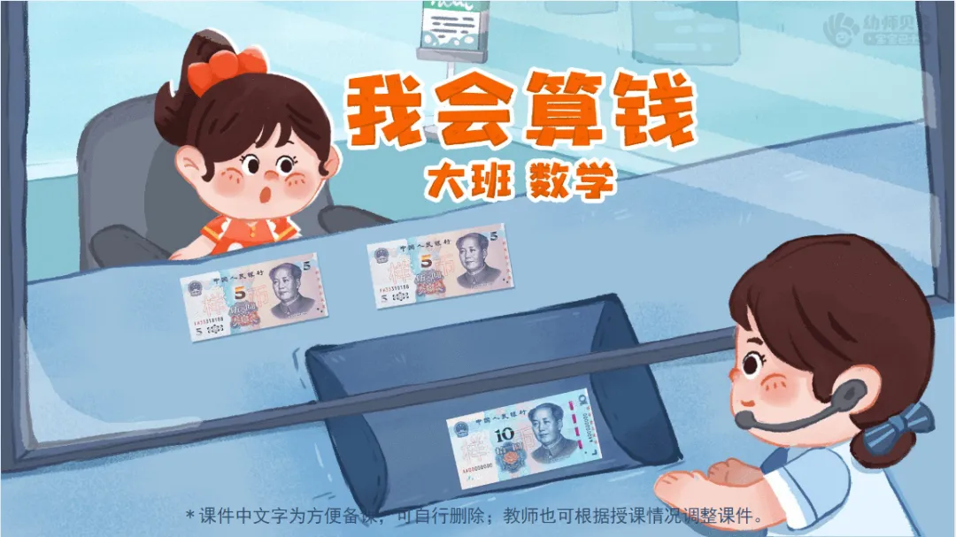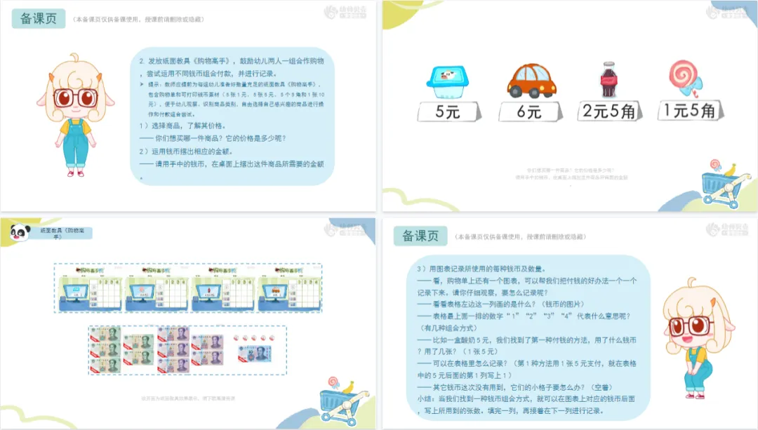 >幼儿园大班-数学-《我会算钱》PPT+教案+纸面教具分享