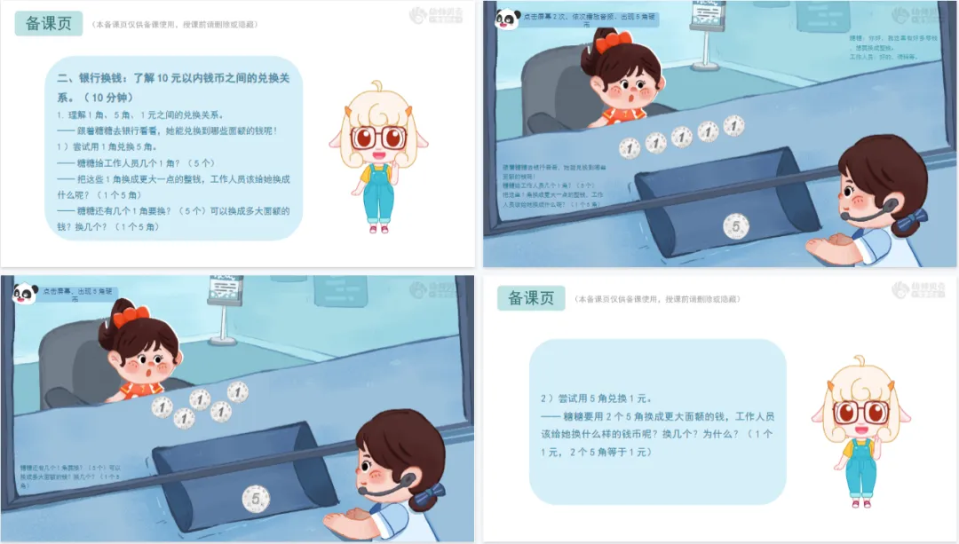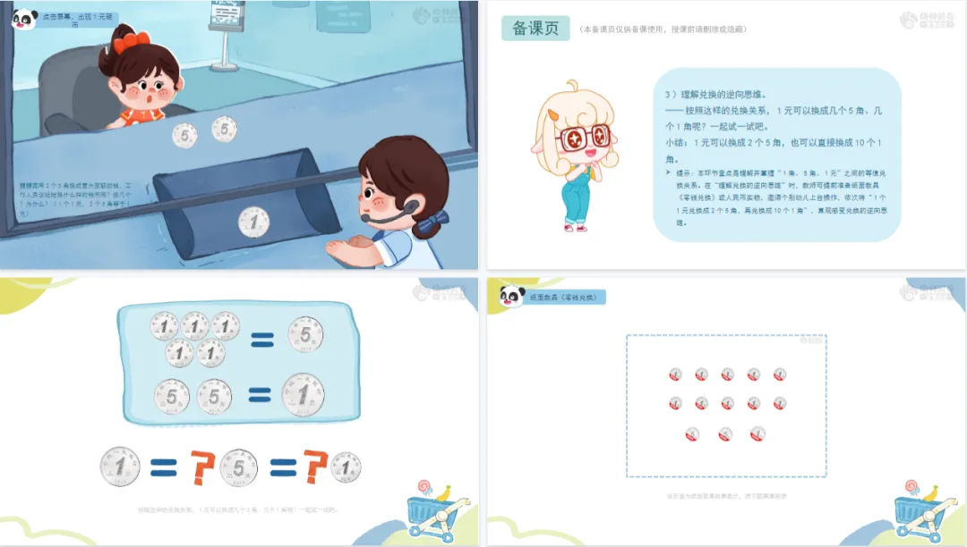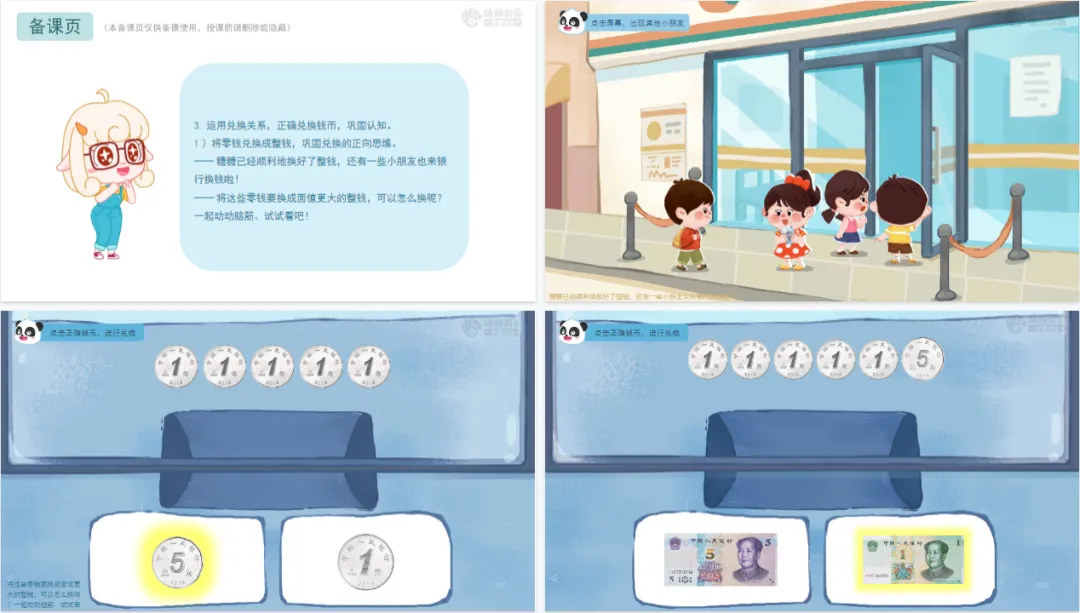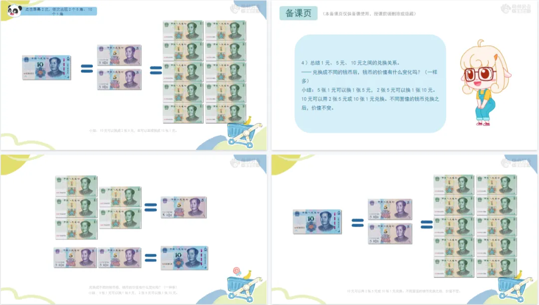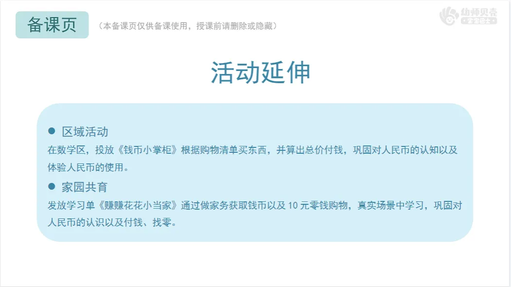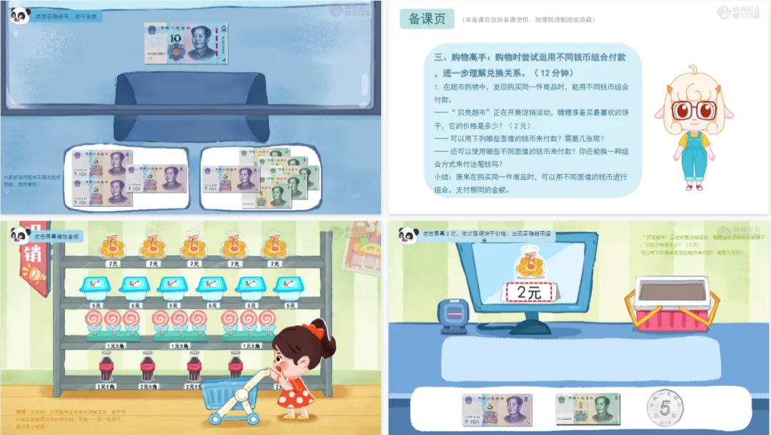 >幼儿园大班-数学-《我会算钱》PPT+教案+纸面教具分享