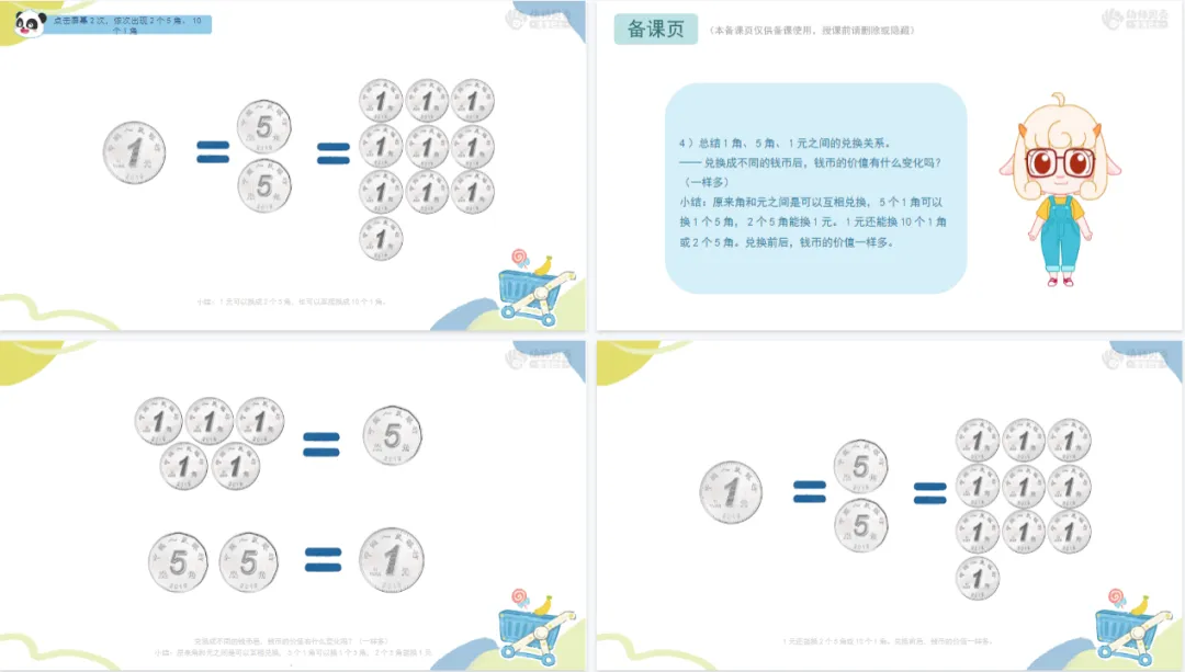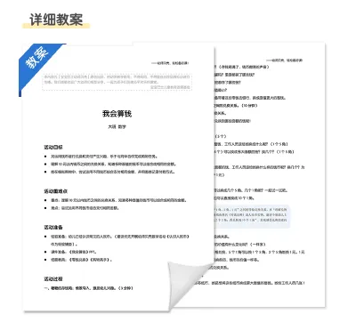 幼儿园大班-数学-《我会算钱》PPT+教案+纸面教具分享