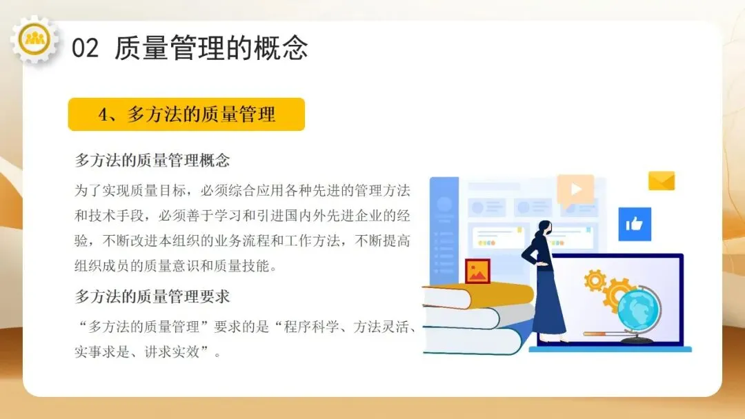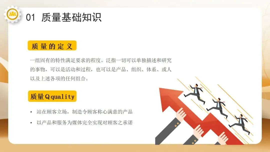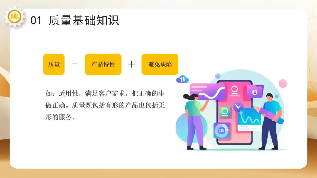 如:适用性,满足客户需求,把正确的事做正确。质量既包括有形的产品也包括无形的服务。