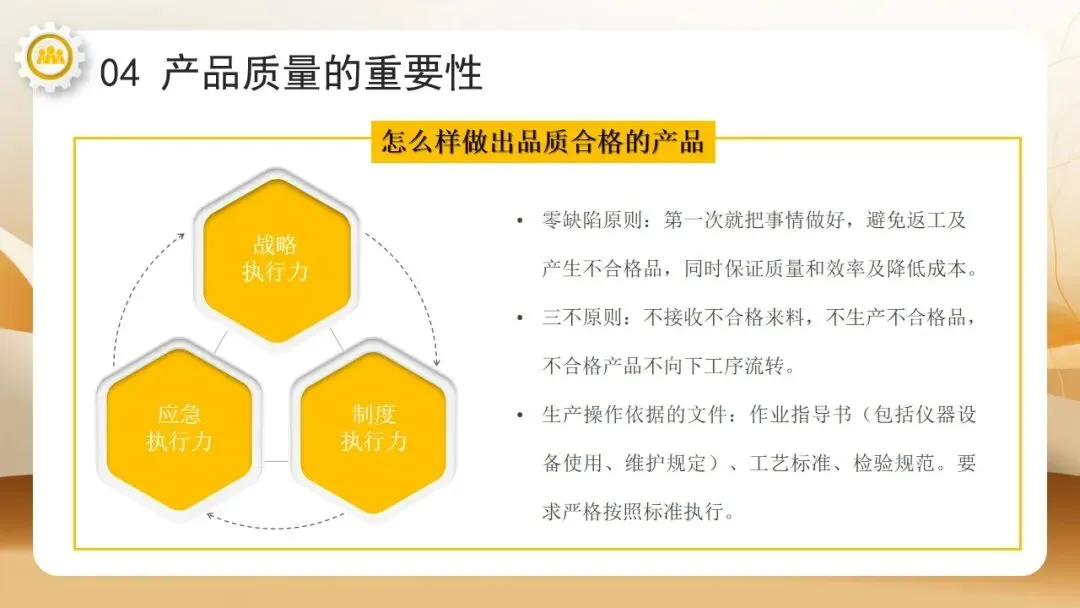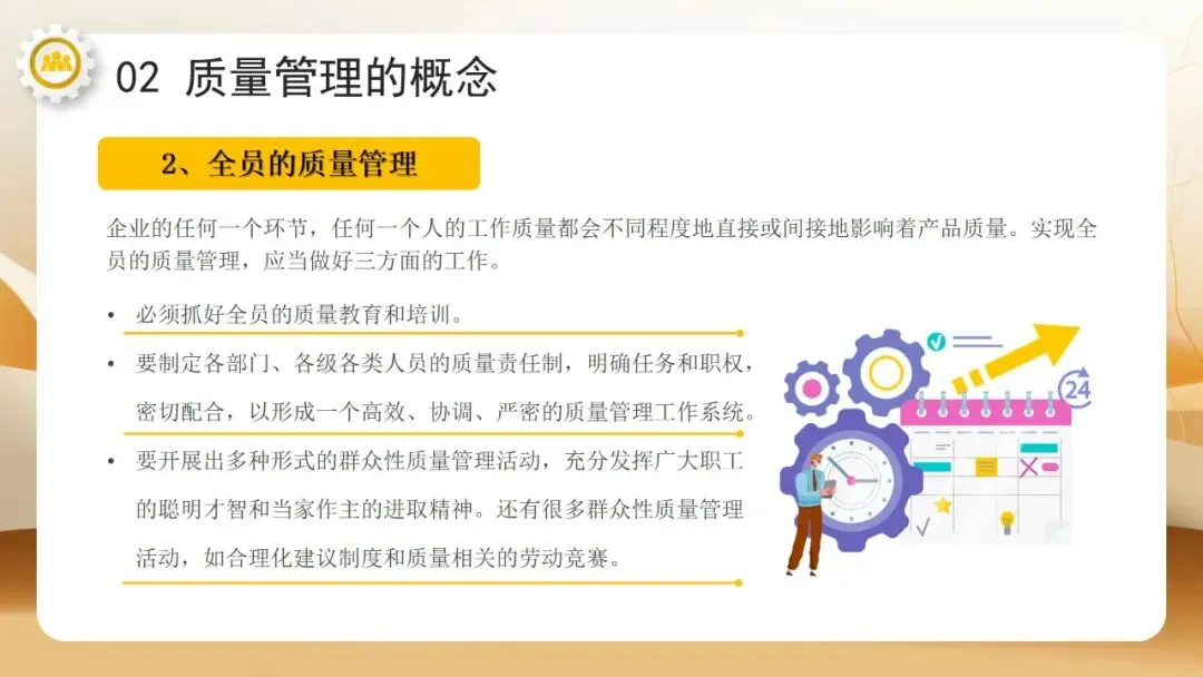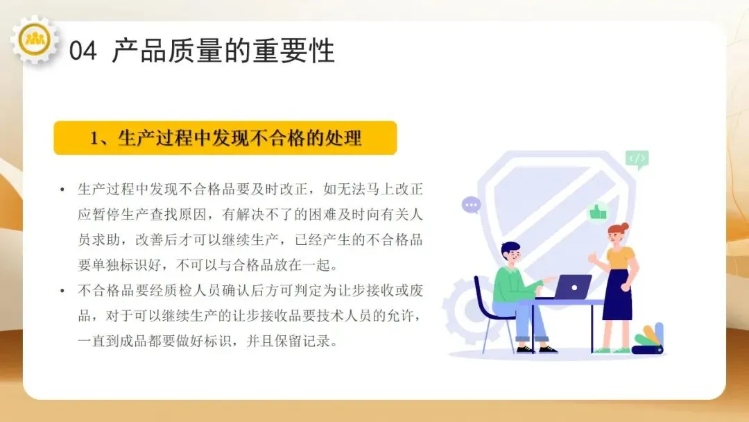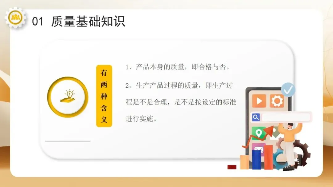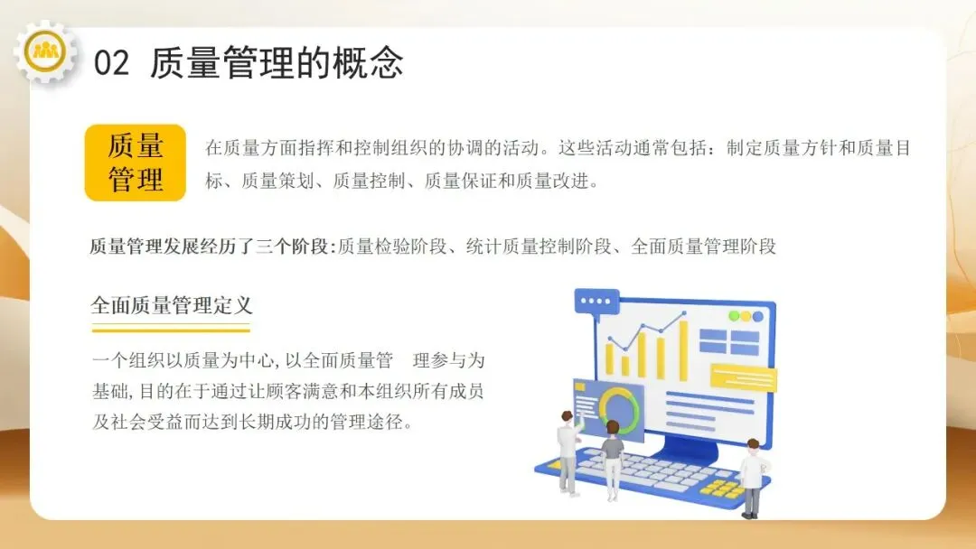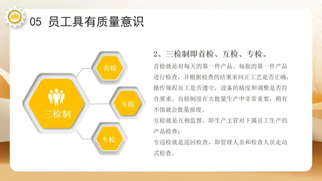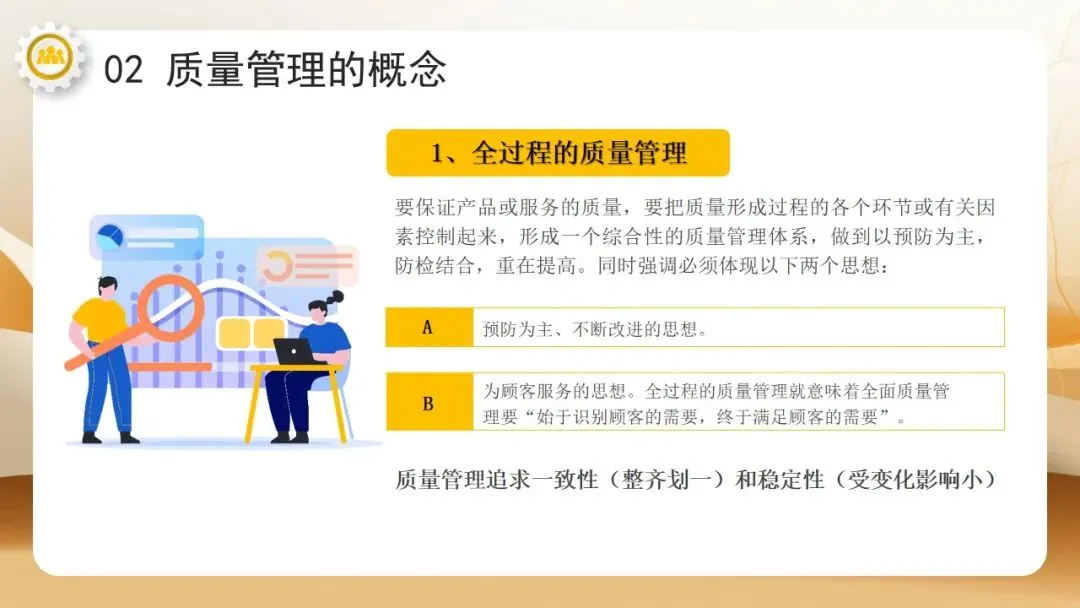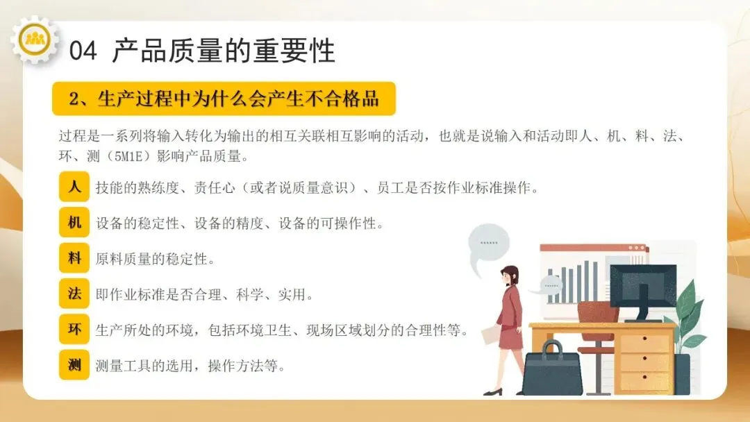 2、生产产品过程的质量,即生产过程是不是合理,是不是按设定的标准进行实施。