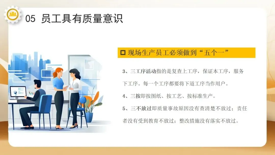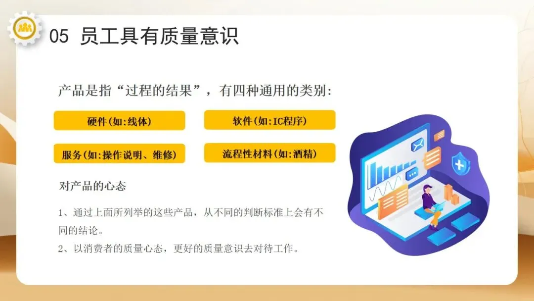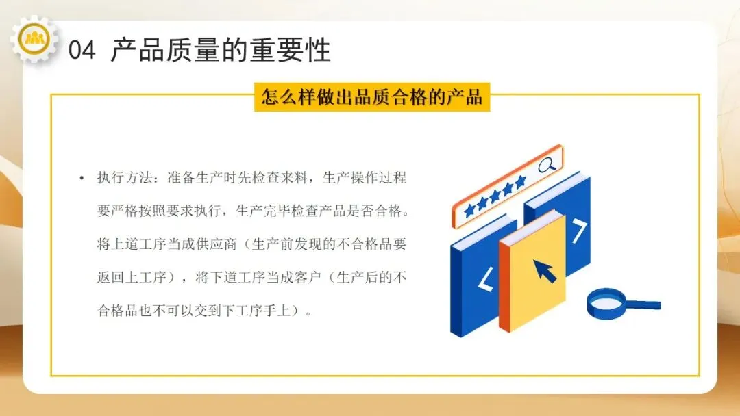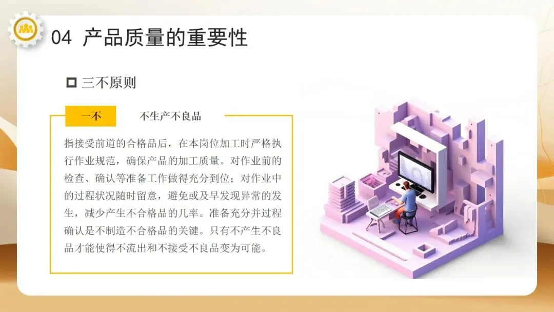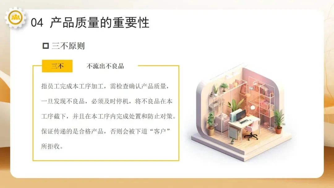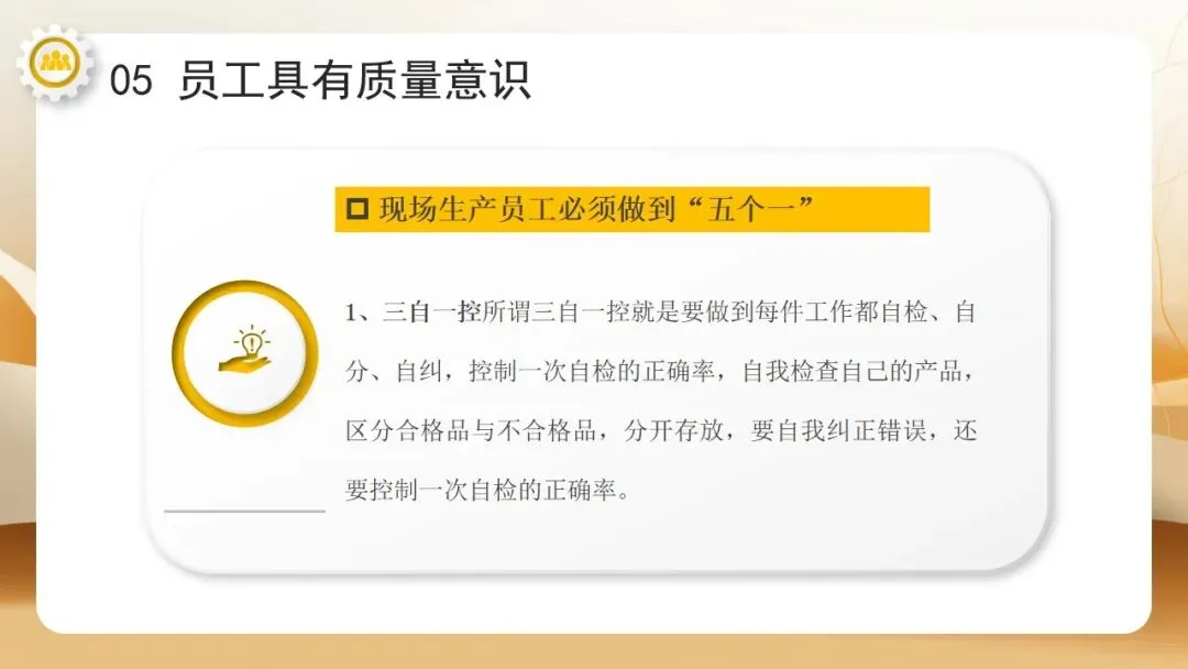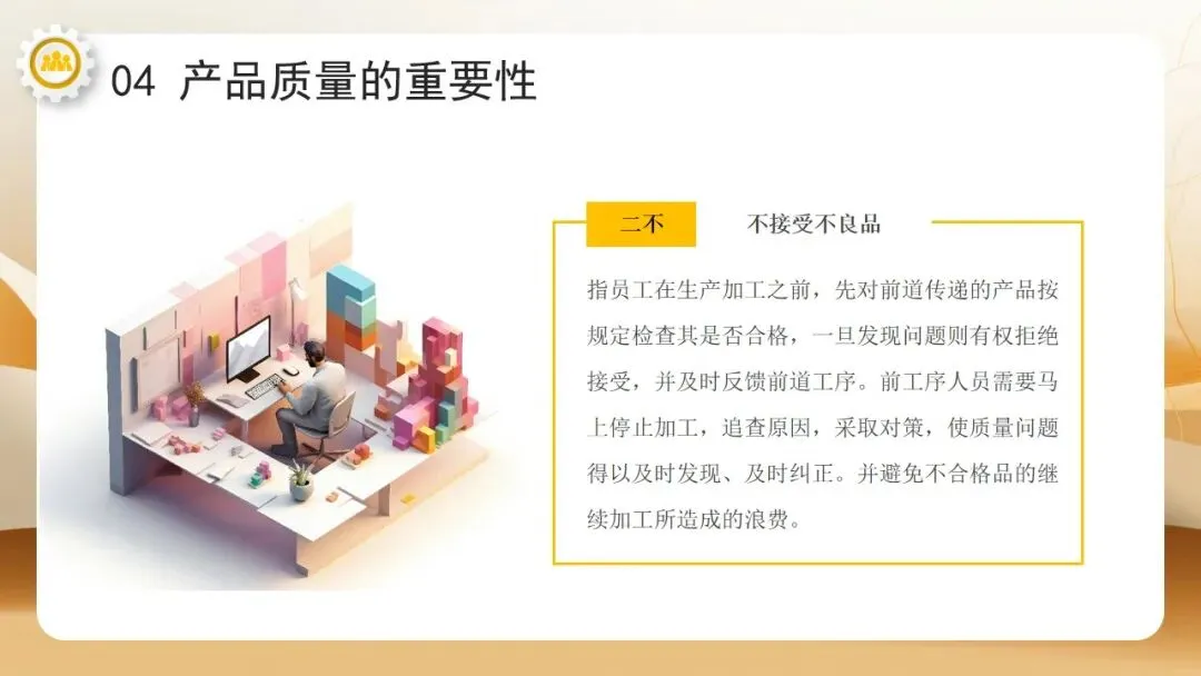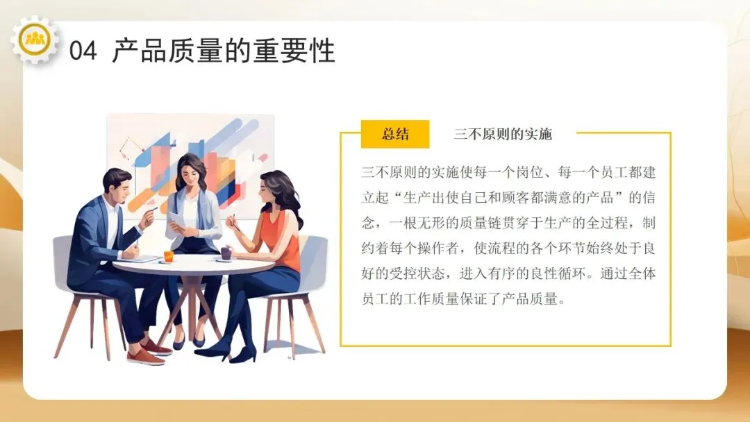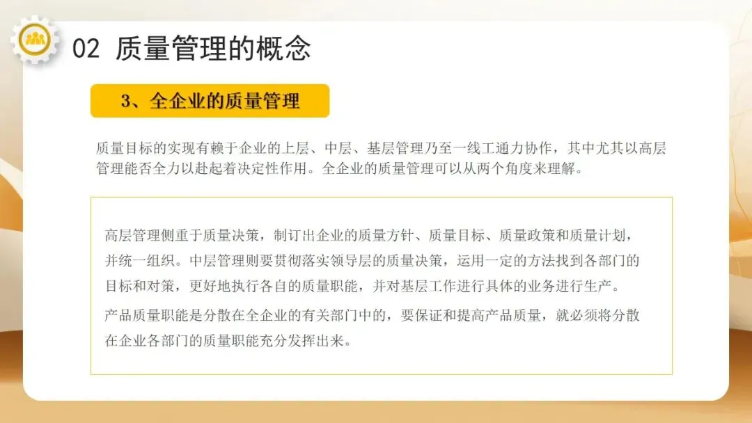 2、生产产品过程的质量,即生产过程是不是合理,是不是按设定的标准进行实施。