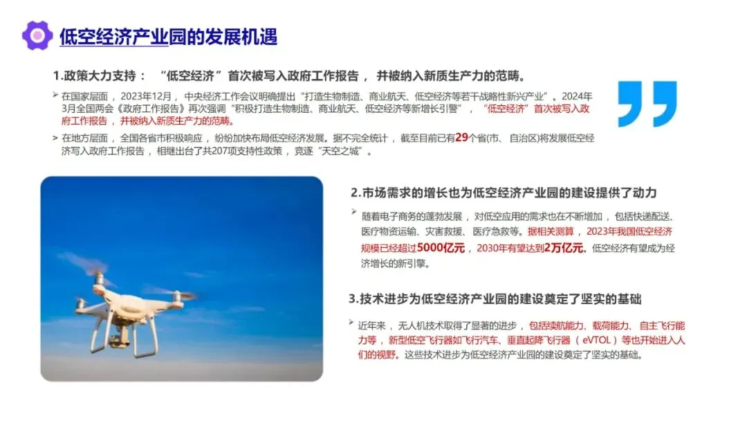 低空经济产业园的加速落地,既是政策引导的结果,更是市场需求与产业发展的必然选择,其发展逻辑植根于经济、社会与技术的多重需求。