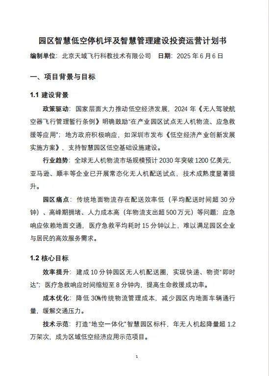 传统园区智慧低空停机接驳系统及智慧管理平台建设投资运营计划书v1.0.pdf
