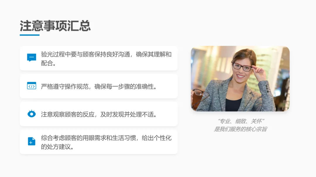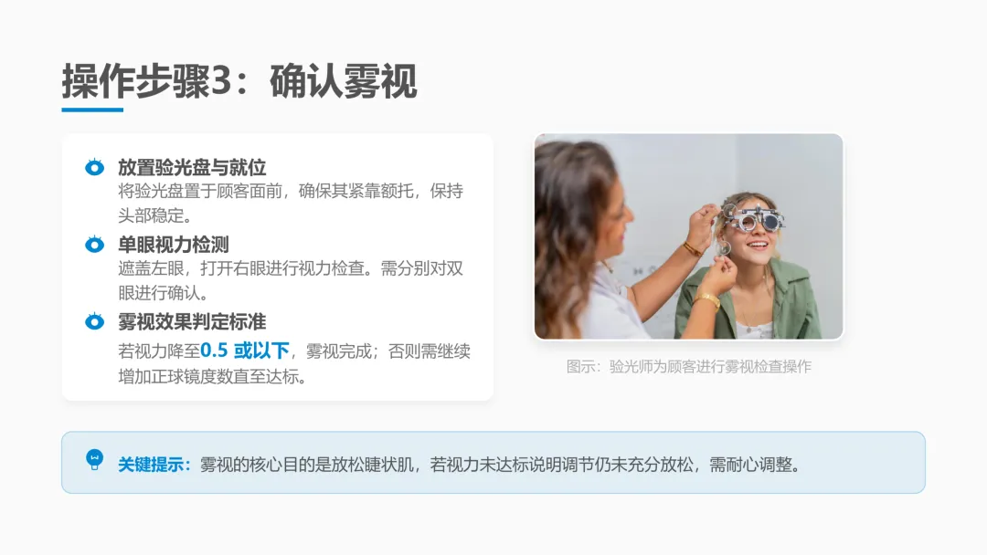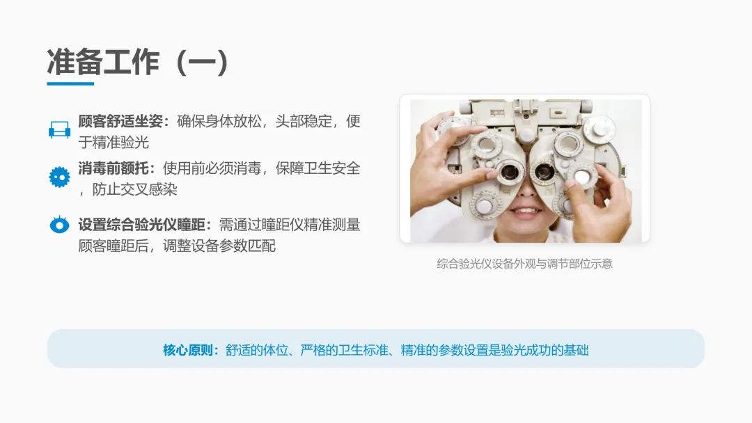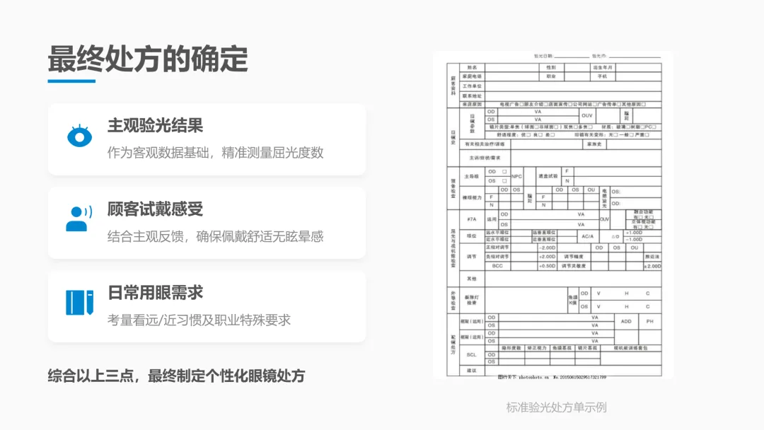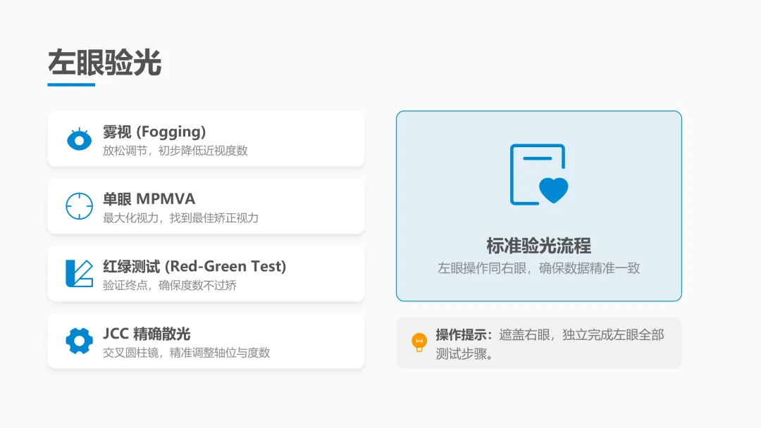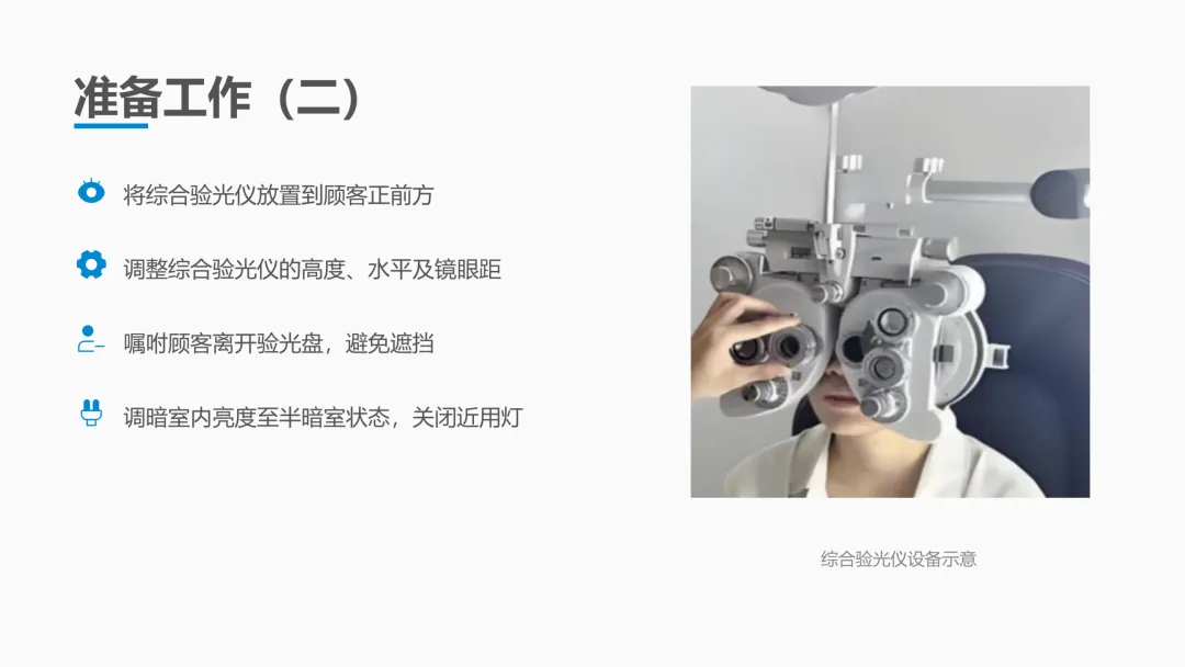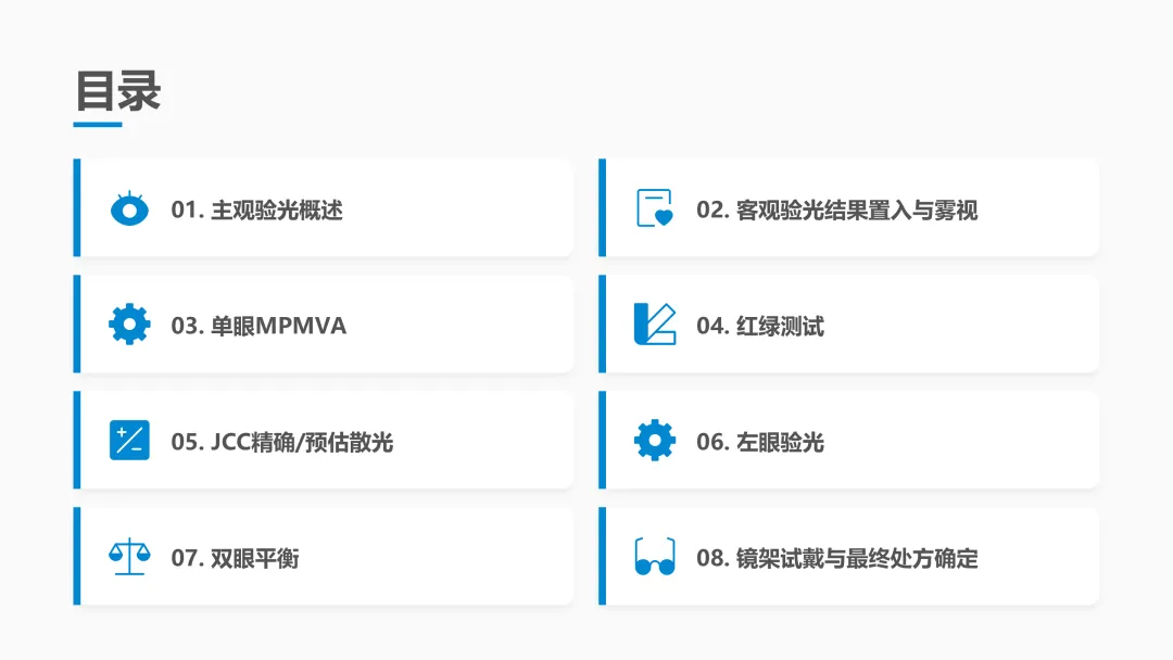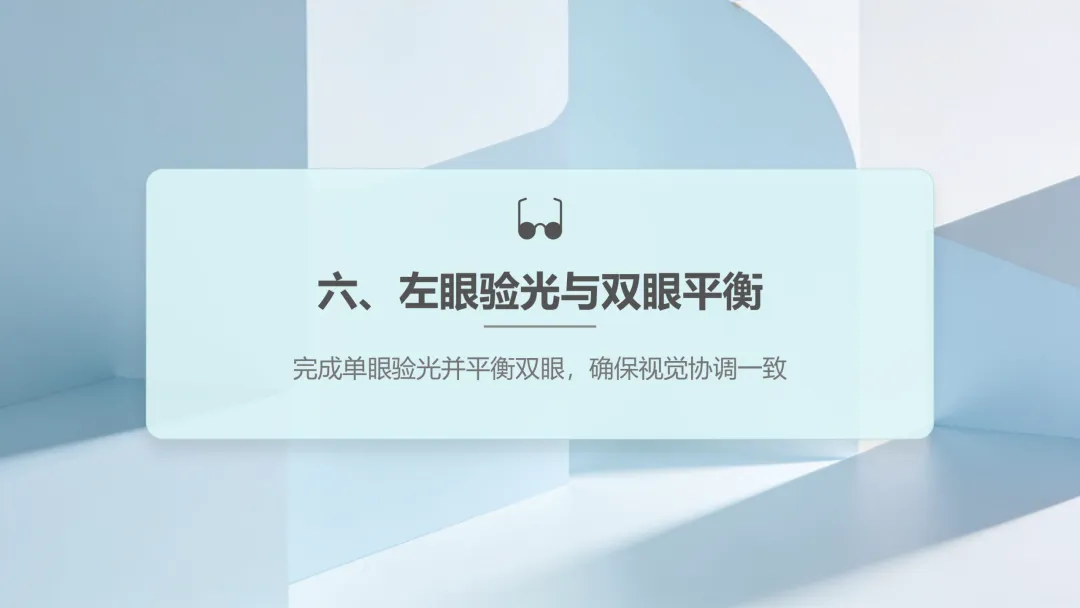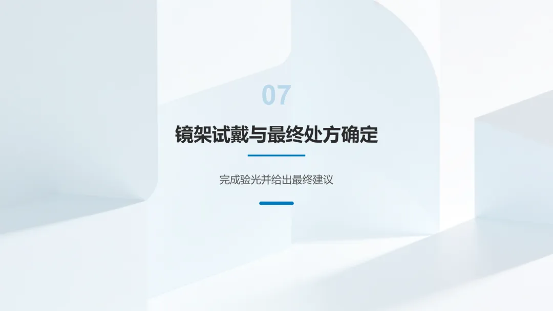 正规靠谱的验光,一定是这个流程:前期准备 → 眼睛放松 → 单眼精测 → 双眼平衡 → 试戴定稿