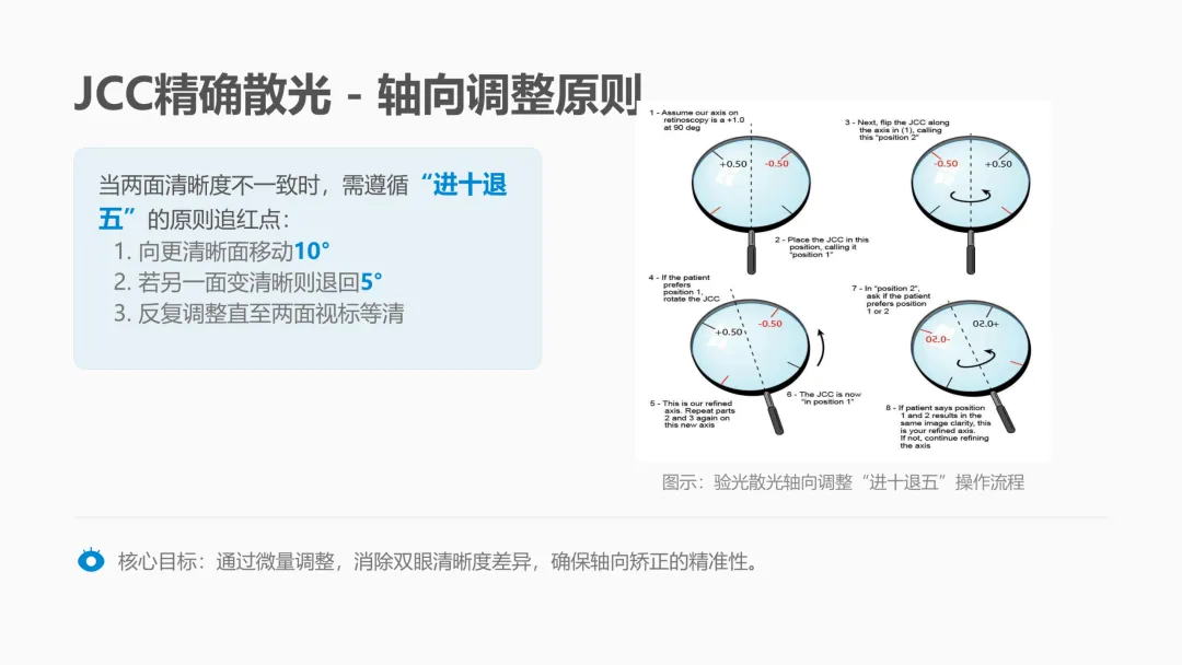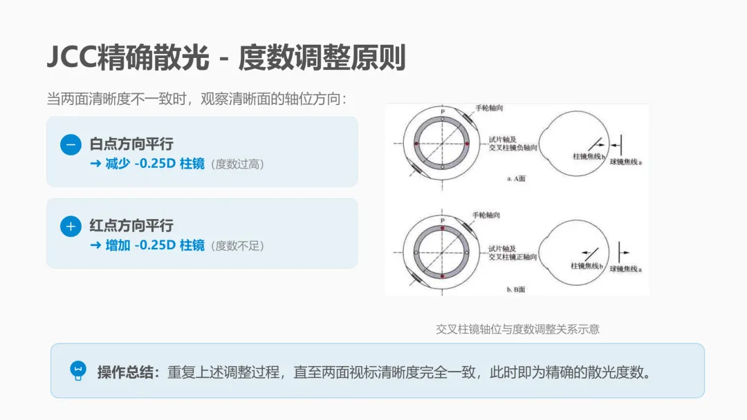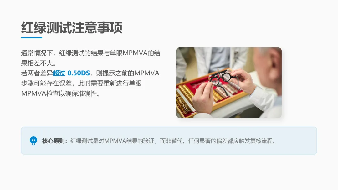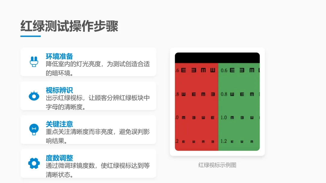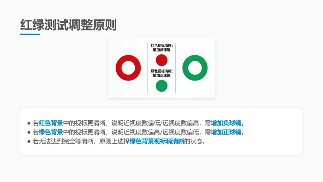 看红、绿两边的图案,慢慢调整到两边差不多清楚。✅ 小技巧:如果没法完全一样,优先选绿色稍清楚,避免度数配太深。