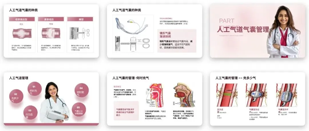 人工气道气囊的管理PPT对高容低压型气囊的特点与临床应用优势进行了系统梳理,是临床护理人员气道管理专项培训的核心内容,能够帮助护理人员精准掌握该类型气囊的管理规范。