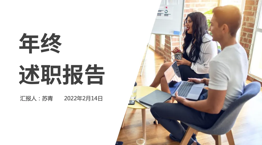 她给我看了她做的PPT和实习生做的PPT,她做的PPT封面是这样的。