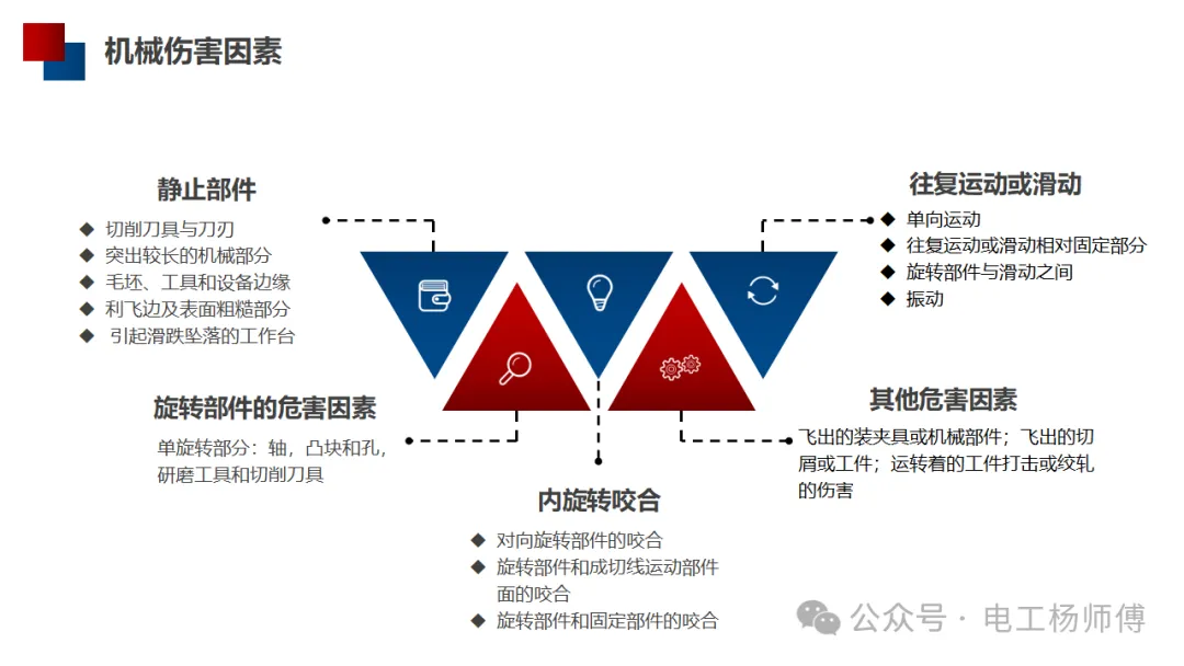 除了运动和静止部件的直接危险外,还有一些其他因素也可能导致机械伤害: