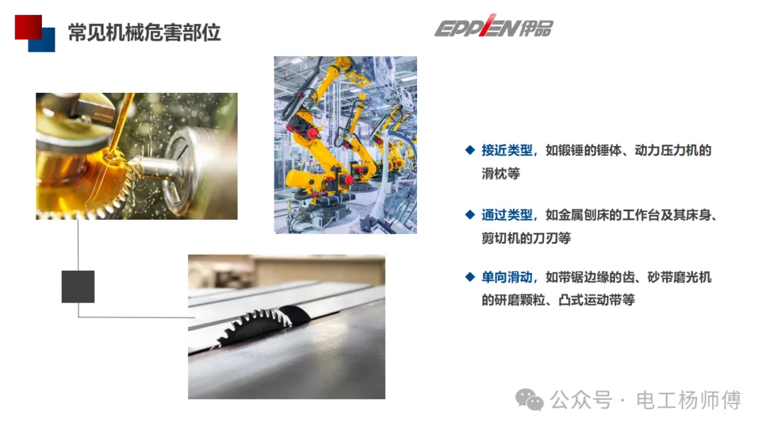 运动部件是机械伤害的主要来源之一。常见的危险包括: