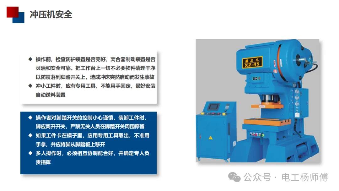 冲压机是一种常见的金属加工设备,主要用于板材的冲压成型。由于其操作频繁且危险性较高,必须严格遵守安全操作规程。