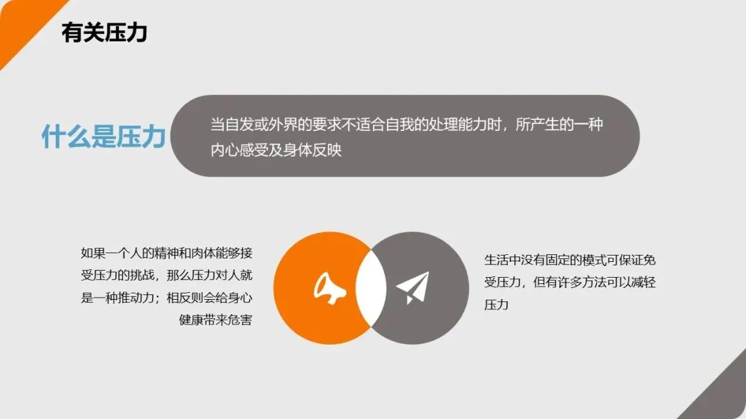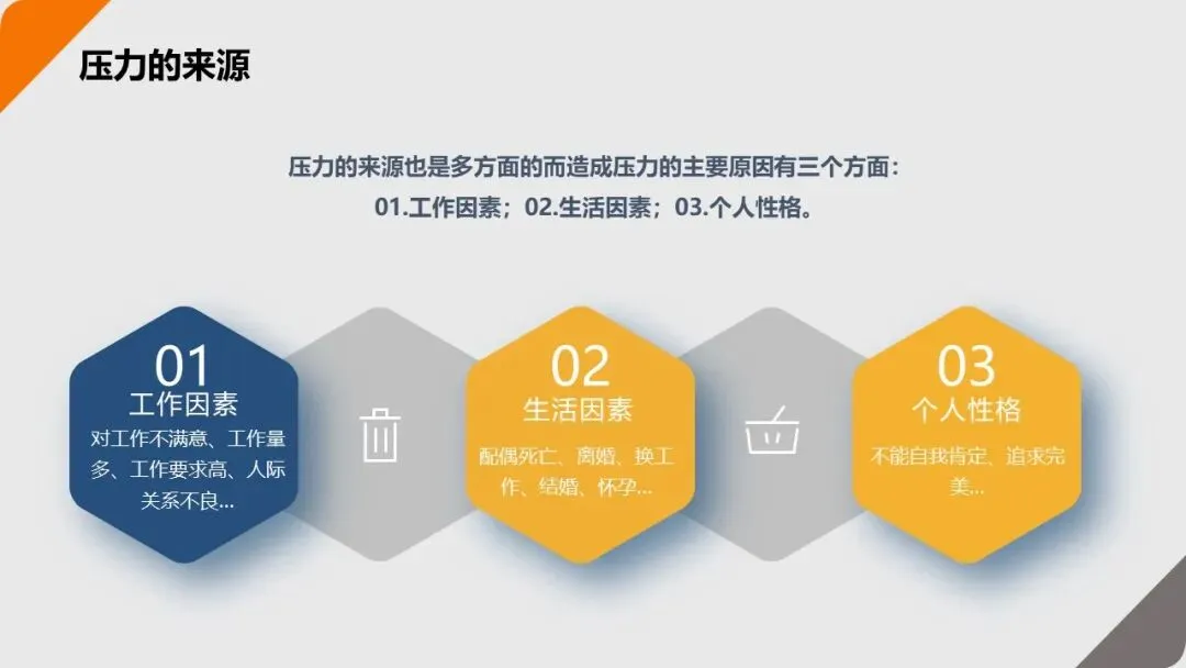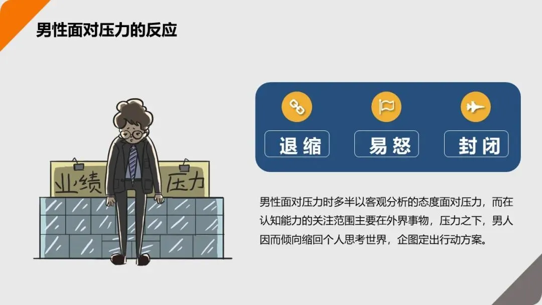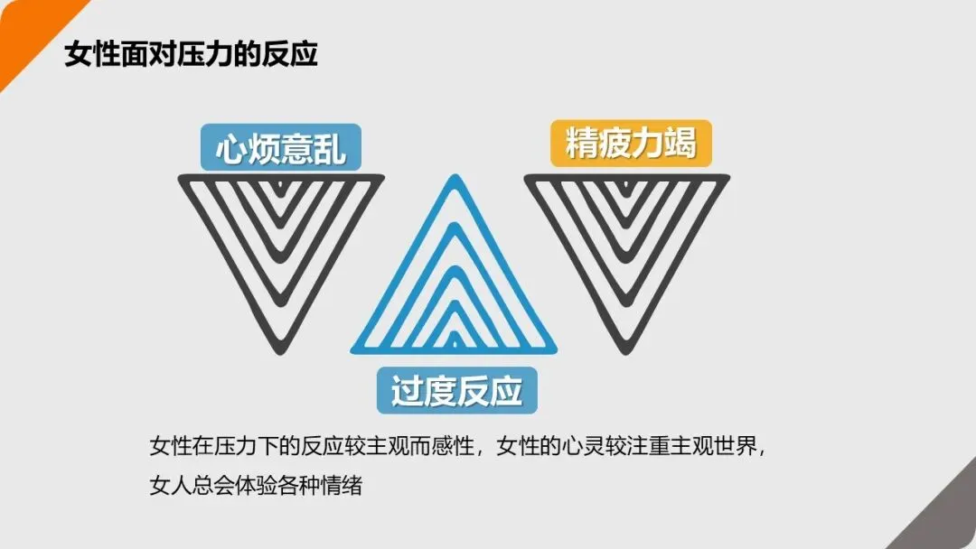 女性面对压力时,更倾向于 “感性反应”—— 比如心烦意乱、向他人倾诉;男性则更倾向于 “理性封闭”—— 比如沉默寡言、独自思考解决方案。了解这种差异,能更好地理解自己和他人的压力反应;短期过度压力会导致 “效率下降、失误增多”;长期过度压力则会引发高血压、心脏病等生理疾病,甚至增加焦虑症、抑郁症的风险。2. 压力的 3 大来源:找到 “根” 才能对症解
