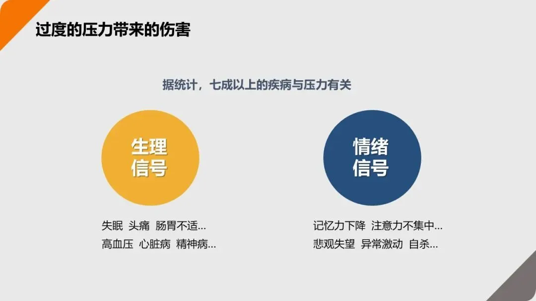 据统计,职场中 70% 以上的疾病与压力相关,过度压力不仅会导致失眠、头痛、高血压等生理问题,还会引发焦虑、暴躁、悲观等情绪危机,甚至影响工作效率和人际关系。