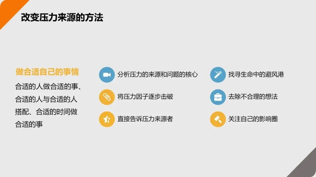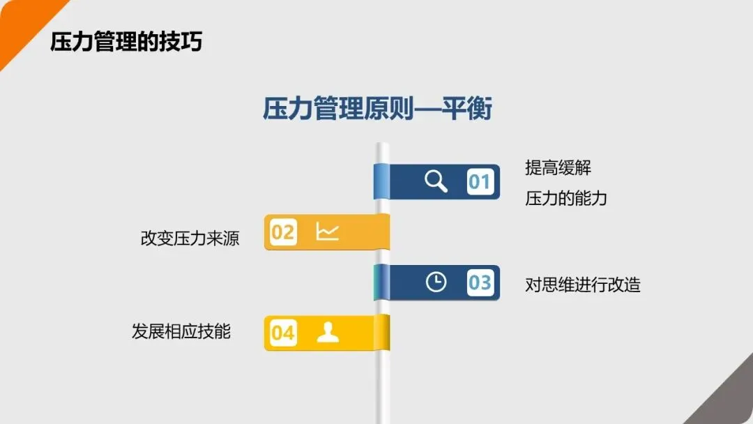 - 提升自己的 “抗压能力”,用时间管理、沟通技巧减少压力;