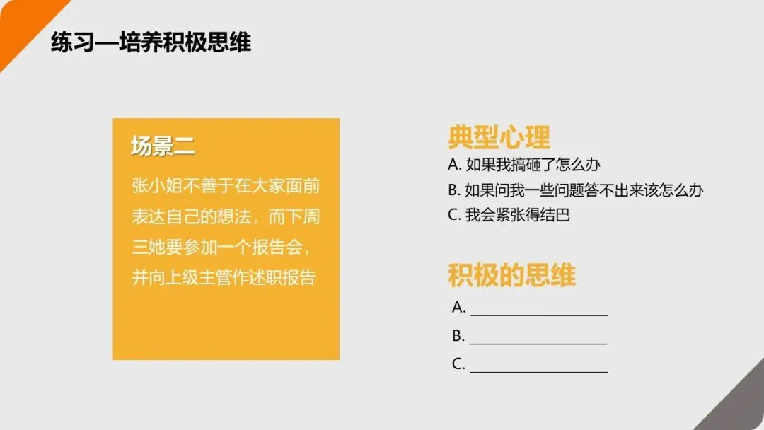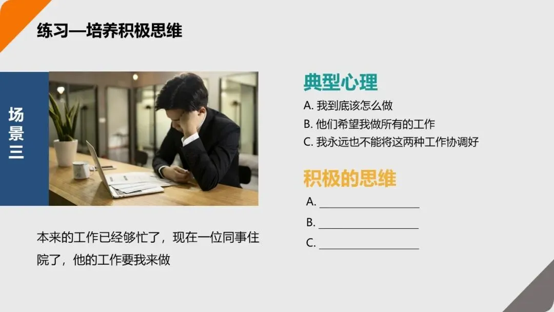 遇到压力场景时,主动用 “积极视角” 替代 “消极视角”。比如: