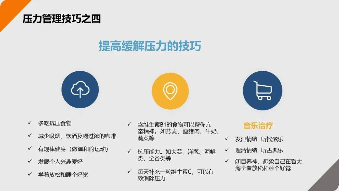 当压力已经产生时,需要用 “快速有效的方法” 缓解,避免压力累积成 “身心危机”。
