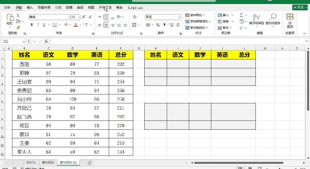 第二步:输入公式,一键提取前后三名数据