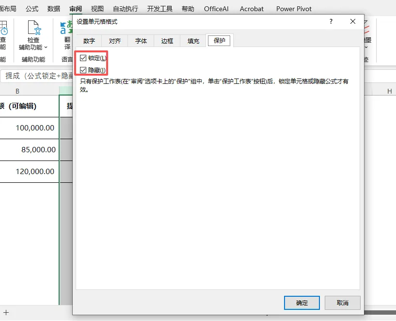 ·选中C列和D列(公式区域)→同样进入“保护”选项卡→勾选“锁定”,再勾选“隐藏”(这样编辑栏里看不到公式)。