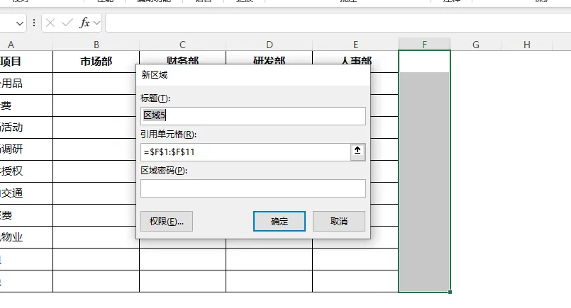 标题可以自己命名,比如市场部,区域密码可以按照不同部门的特点进行设置,单元格可以按照需要进行调整,设置好点击应用,按照同样的方法设置每个部门的区域密码。