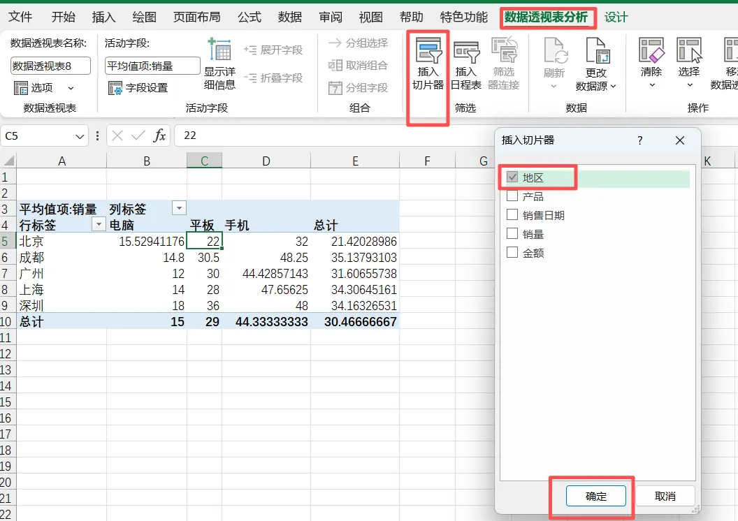 操作步骤:选中透视表空白区域→ 点击顶部菜单栏的【透视表分析】(或【分析】)选项卡→ 找到【插入切片器】按钮→ 勾选需要筛选的字段(比如“地区”“产品”)→ 点击【确定】。