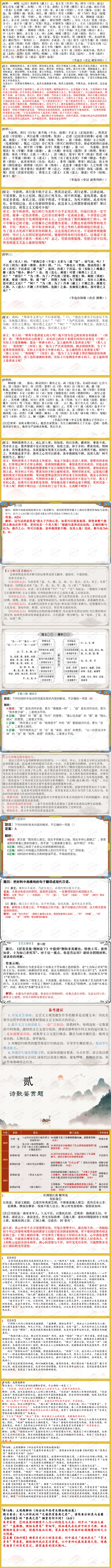 12. A 【12题详解】A.“他随即拔剑刺向秦王”错,荆轲手持匕首刺向秦王,而非“拔剑刺向秦王”,拔剑的是受惊后的秦王。
