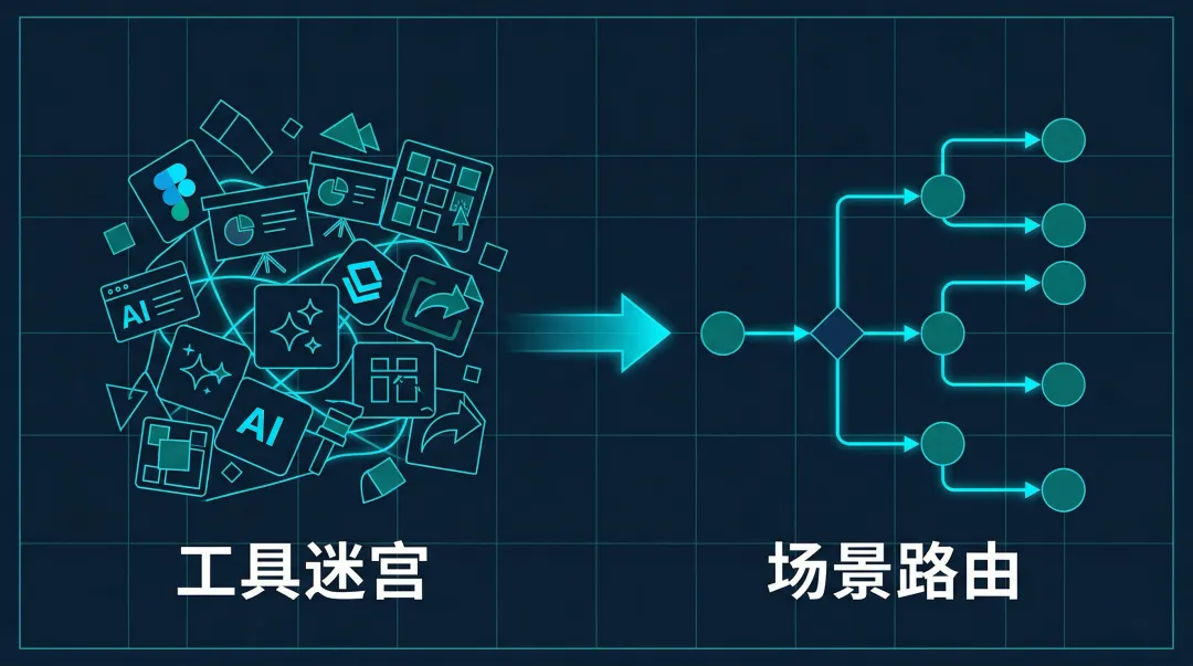 用户说「帮我做一套 PPT」,路由器先问几个关键问题——你有什么输入?要交什么格式?一次性的还是批量的?——然后自动分流到最合适的工作流。