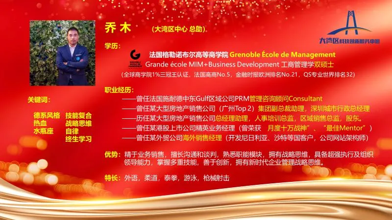 活动上,大湾区科技创新服务中心核心管理团队——创新事业部总经理周进,战略发展部总经理王崇军,创投事业部总经理李立照,知识产权事业部总经理王燕明,以及创新事业部总经理助理乔木也都进行了介绍演讲。