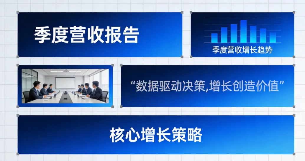 规划内容模块:确定需要展示的3-4个核心元素(如图表、关键数据、引用语、配图)