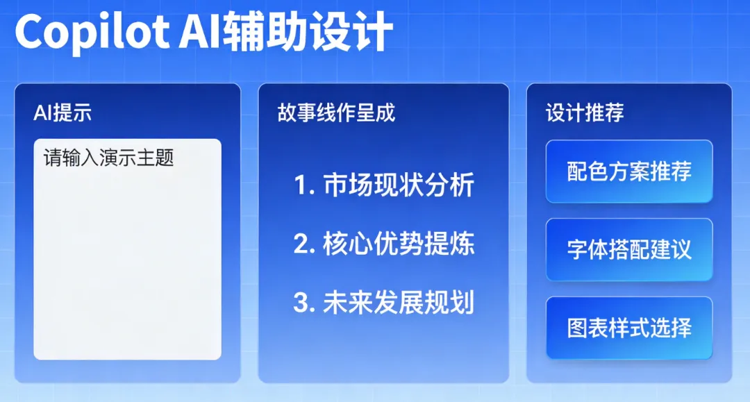 正确做法:AI是设计助手而非替代者。提供具体、详细的需求描述,如"创建5页的融资路演PPT,包含市场分析、产品优势、财务预测,使用蓝色科技风格"。生成后仍需人工审核调整。