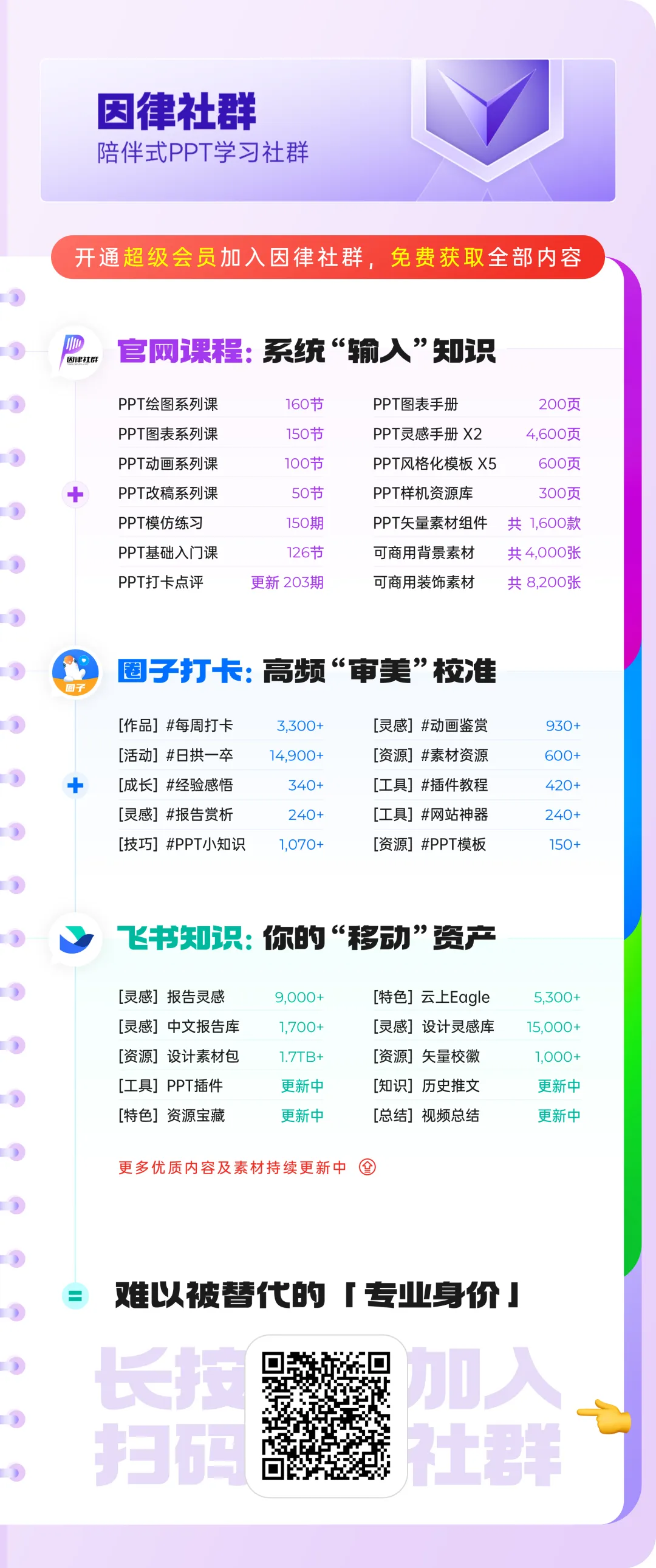 要是想查看更多 PPT 系列课程、干货内容以及优质素材资源,和更多有意思的小伙伴一起学习、打卡和交流,欢迎加入我们的付费社群: