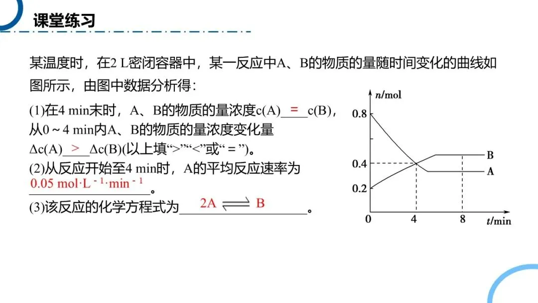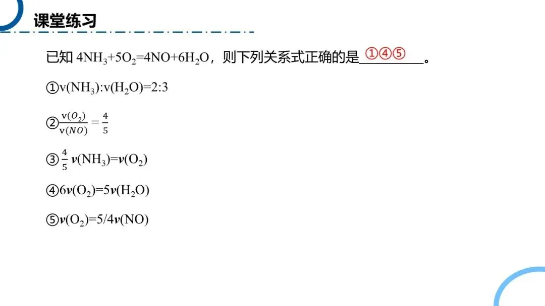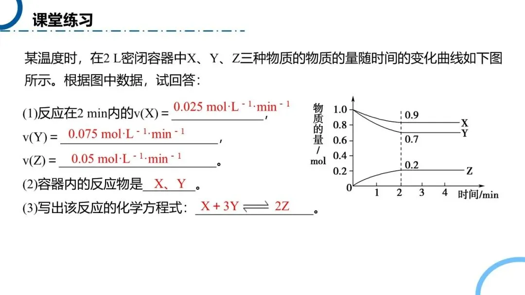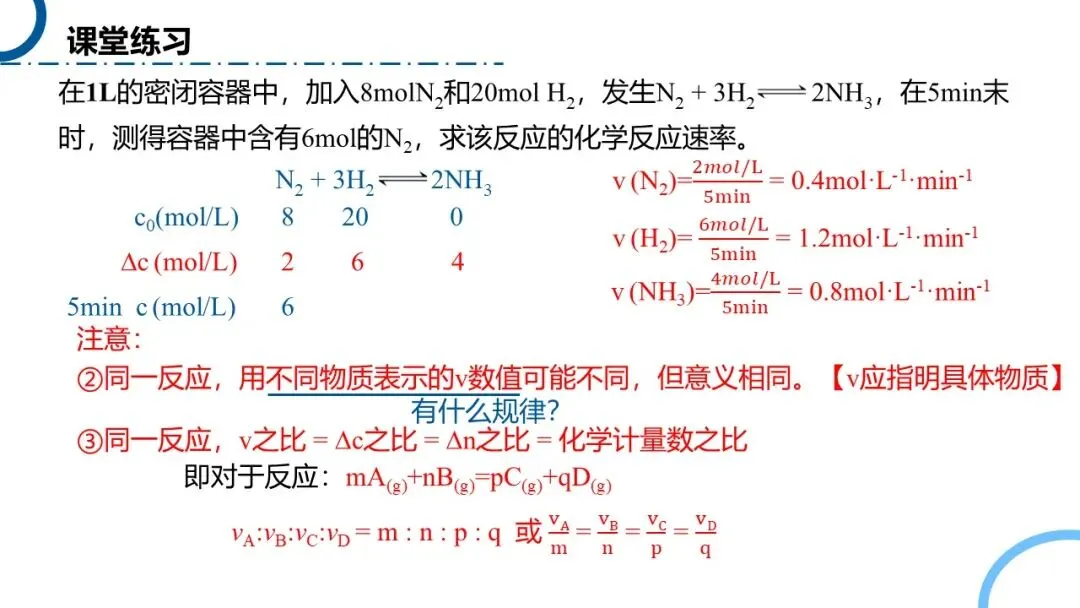 初步借助三段式进行解题,引出同一反应不同物质的速率间的关系。