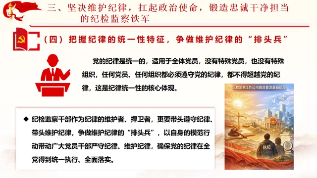 >PPT+讲稿:尊崇纪律、执行纪律、维护纪律,做忠诚干净担当的纪检监察干部(37页)